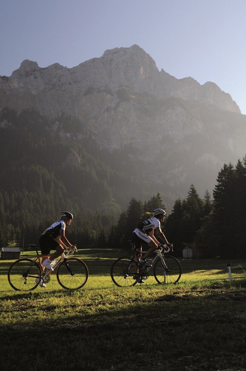 Unter Radsportlern ist das Tannheimer Tal schon länger bekannt, denn 2001 zog der Tross der Österreich Radrundfahrt durchs Tal. 2005 kamen die Radprofis der Bayernrundfahrt bei der Auftaktetappe auf Tiroler Boden und wurden mit der Bergwertung Tannheimer Tal und der Bergwertung Jungholz belohnt. Und sogar Profis fielen die landschaftlichen Reize des "wohl schönsten Hochtal Europas" auf. Sattgrüne Wiesen, der Haldensee und eine schöne Bergkulisse begleiteten die Radprofis auf ihren Wettkampfkilometern. Und somit hat sich das Tannheimer Tal auch als ideale Region für gezieltes Training oder ausgedehnte Touren angepriesen. "Das Tannheimer Tal ist ein idealer Startpunkt für lange Rennradtouren in die umliegenden Regionen wie zum Beispiel an den Bodensee oder an den Arlberg", so Michael Keller, Geschäftsführer des Tourismusverbandes Tannheimer Tal und ehemaliger Mountainbike- Bundestrainer Österreichs. Radsportler finden im Tannheimer Tal neben dem idealen Ausgangspunkt auch eine breite Palette von Unterkünften. Vom 5 Sterne Haus bis zum Privatzimmer können Sie Ihe Unterkunft wählen. Nach einer schönen Ausfahrt die Seele baumeln lassen und neue Kräfte tanken. - Das Tannheimer Tal