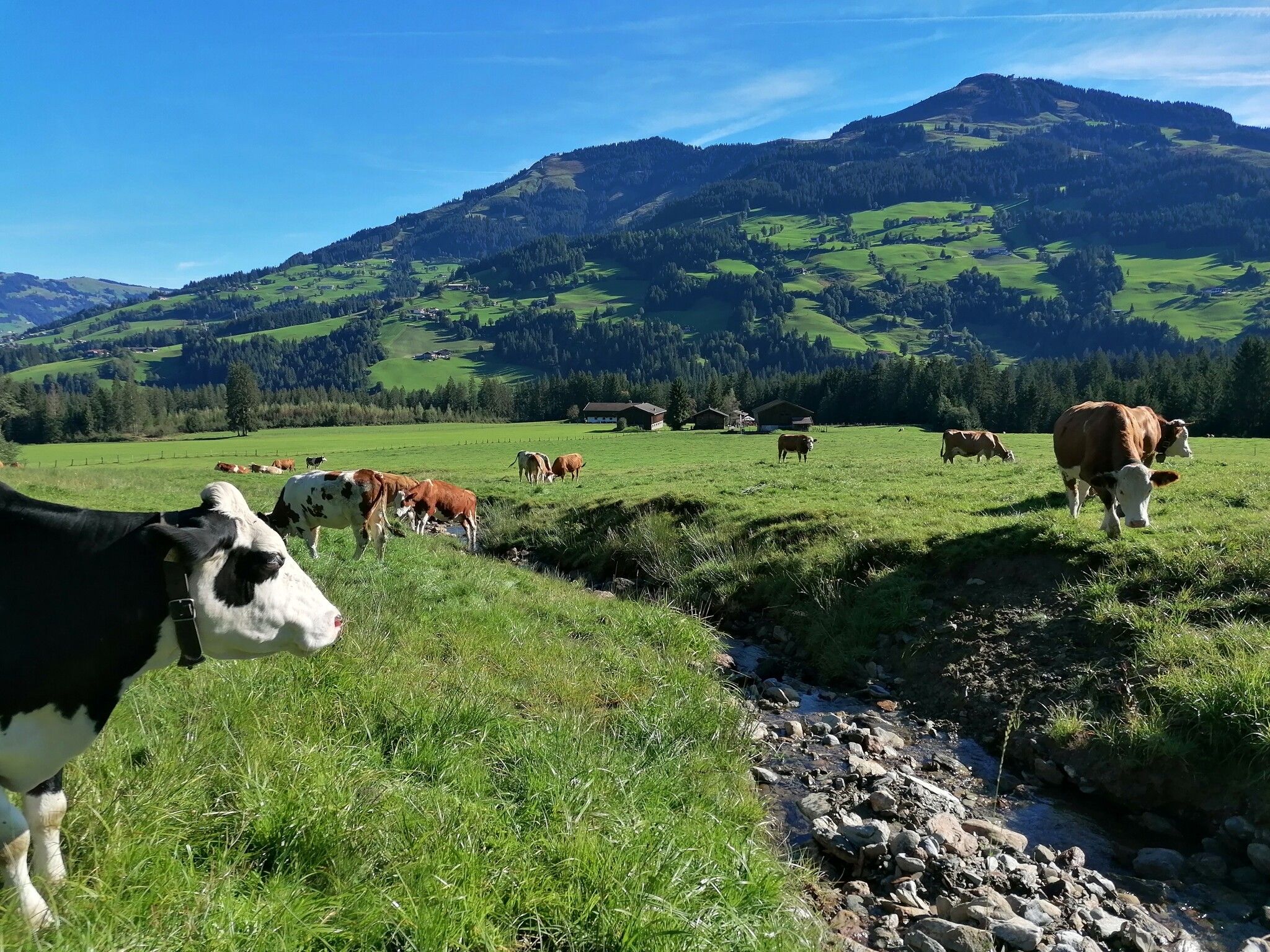 Oder man fährt auf der Forststraße cer Käsealm weiter durch Wald- und Almflächen, bis man wieder auf die Windauer Ache trifft. Kurz darauf kann man, wer noch ein paar Höhenmeter strampeln möchte, links über den Schwaigerberg fahren - oder eben den Weg nehmen, den man hergefahren ist.