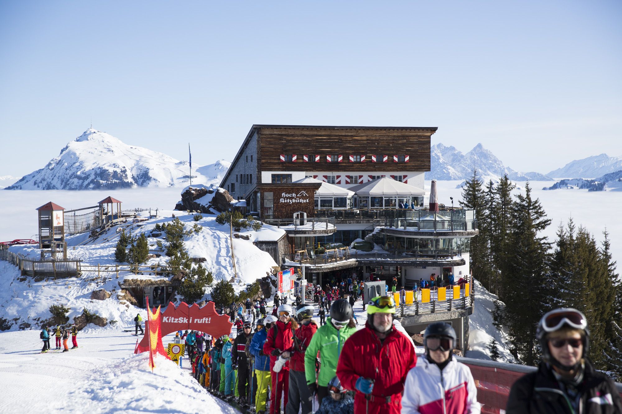Beim Restaurant Hochkitzbühel bei der Bergstation der Hahnenkammbahn muss man fast eine Warnung aussprechen. Es ist sehr wahrscheinlich, dass man vergisst, zurück auf die Piste zu gehen: Zu gut ist hier das Essen, die Atmosphäre ist lässig und die Betreuung durch die Familie Tomschy sehr persönlich. Von der Terrasse kann man bei gutem Wetter nicht nur zum Großglockner sehen, auch sonst werden allerlei Superlative geboten. Christoph Tomschy ist es zu verdanken, dass am Freitag und Samstag internationale Top DJs aus Miami oder Ibiza auch die Partytiger bis in die Nachtstunden gut unterhalten.