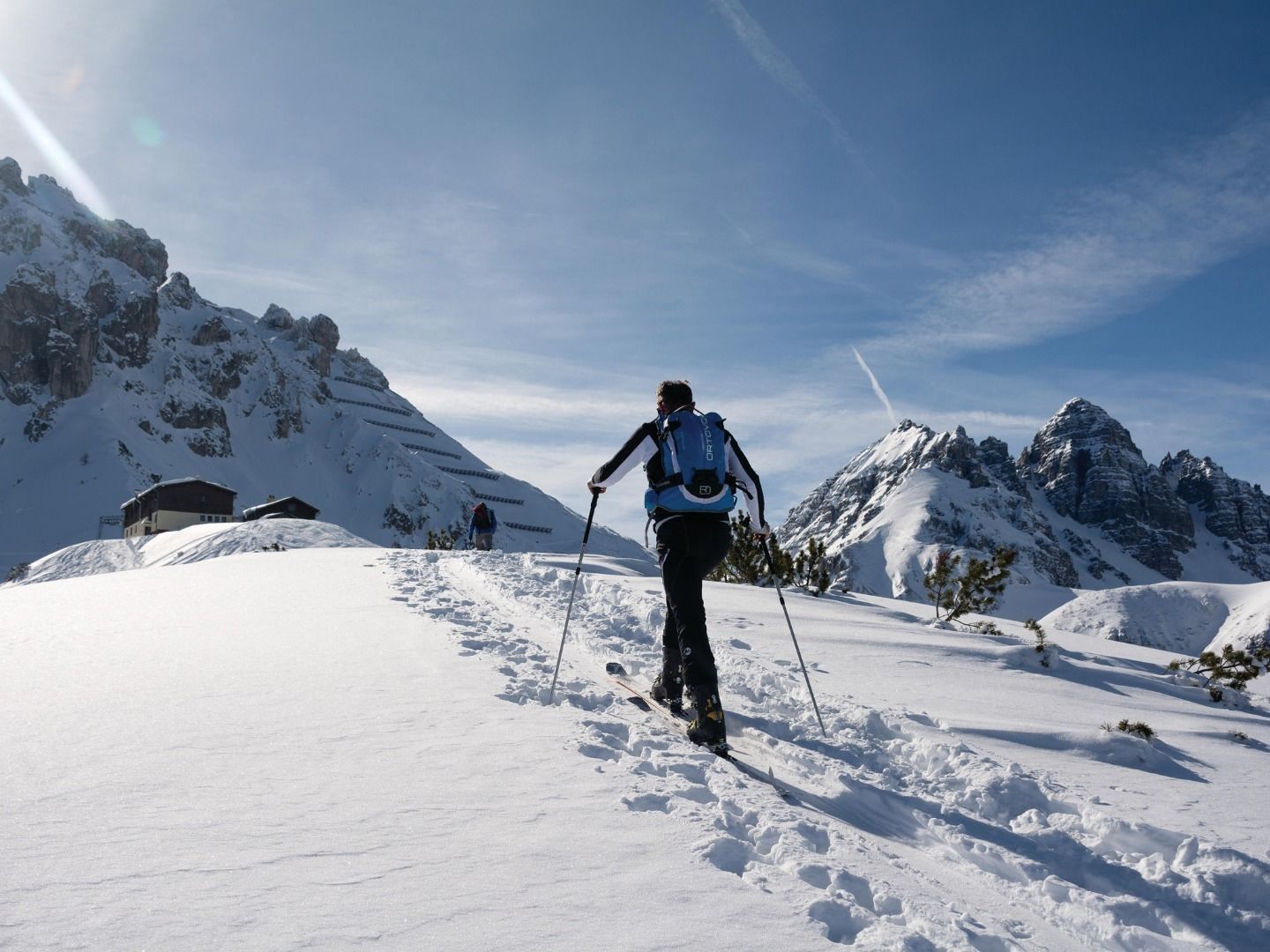 Um zum Birgitzköpflhaus zu gelangen, kurz vor dem Gipfel links halten und am Sattel dem Skiweg folgen. Nach steilerem Gelände erreicht man vom Birgitzköpfl nach etwa 20 Minuten das Birgitzköpflhaus.