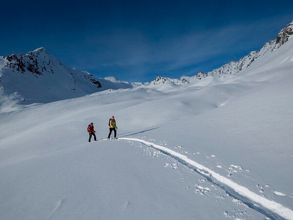 Die "Standard Skitourenausrüstung" besteht aus Tourenski mit Tourenbindung, Teleskopstöcke, Steigfelle, Harscheisen, digitalem Lawinen-Verschütteten-Suchgerät, Lawinenschaufel, Lawinensonde, Erste-Hilfe-Set und einem Mobiltelefon. Ein Rucksack mit entsprechendem Inhalt gehört mitzutragen, auch Wechselbekleidung, Sonnenschutz, Kälteschutz, Verpflegung und genügend zum Trinken! Bei Hüttenübernachtungen nicht vergessen Hygieneartikel und einen Hüttenschlafsack mitnehmen!
