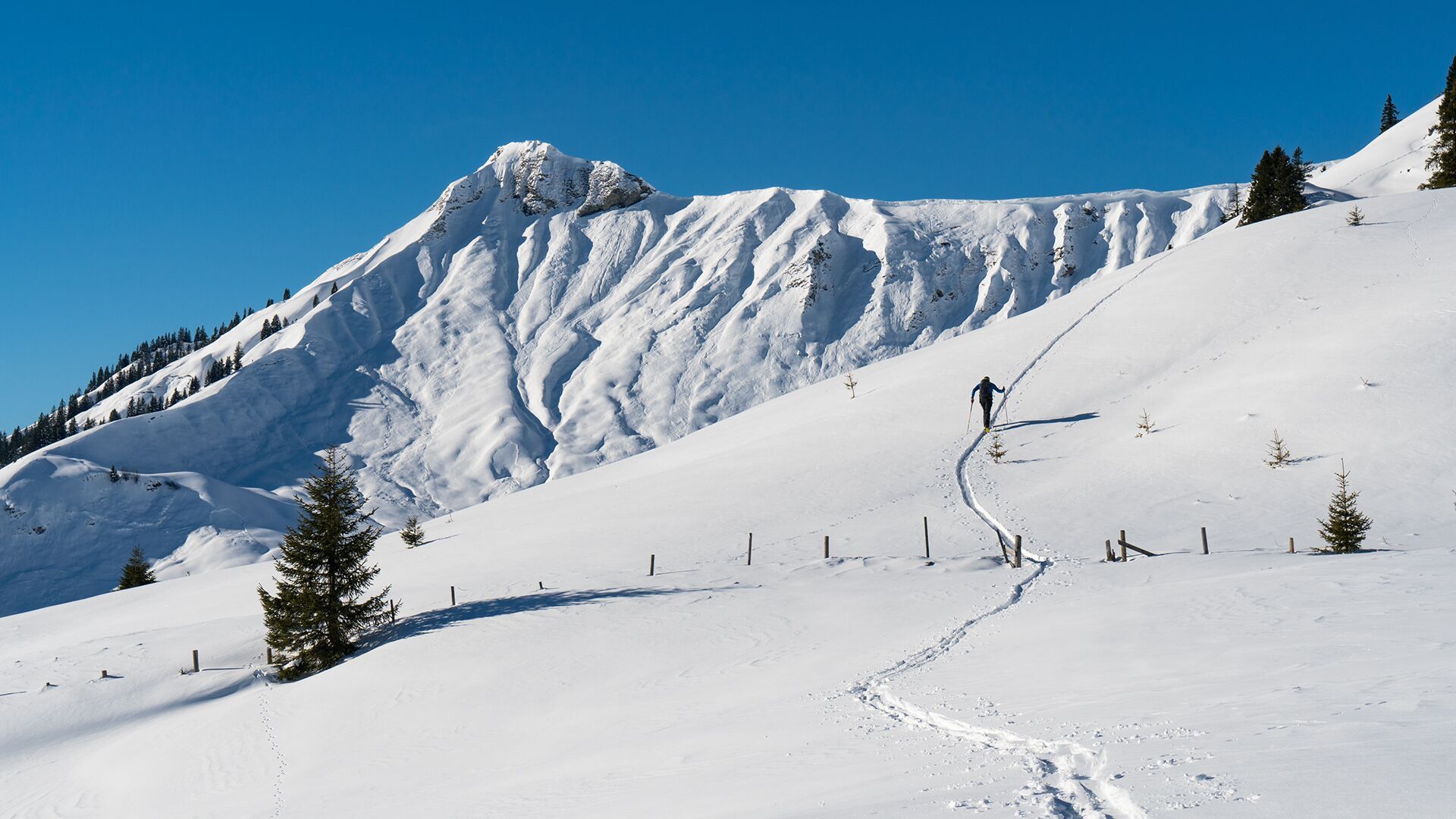 Die Abfahrt erfolgt entlang der Aufstiegsroute.