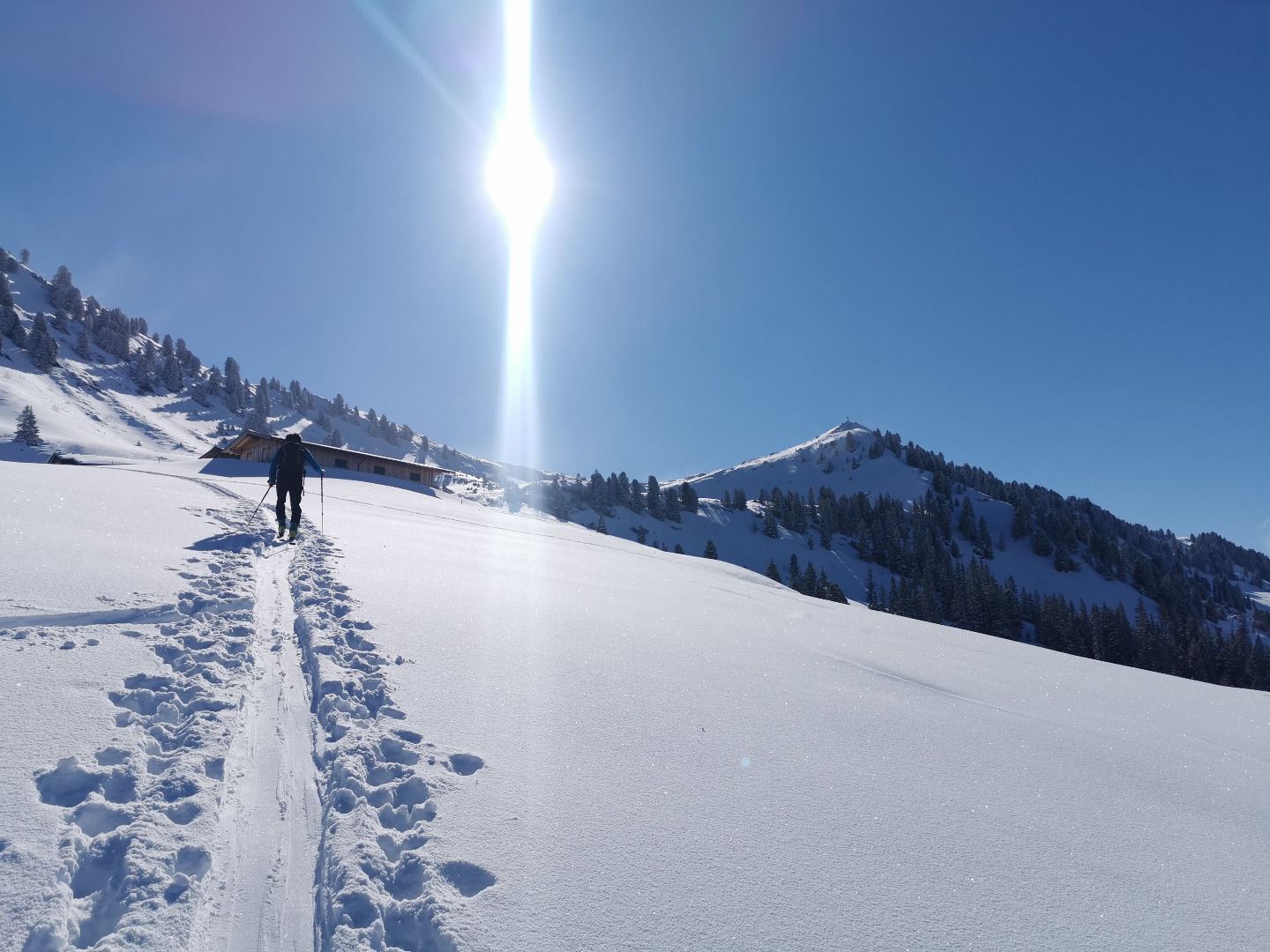Die Skitour zur Breiteggspitze führt über offene Almwiesen und durch verschneite Wälder. Während des Aufstiegs öffnet sich der Blick auf die umliegenden Gipfel der Kitzbüheler Alpen und in den Talschluss der Wildschönau – eine ideale Route für Einsteiger und Genießer.