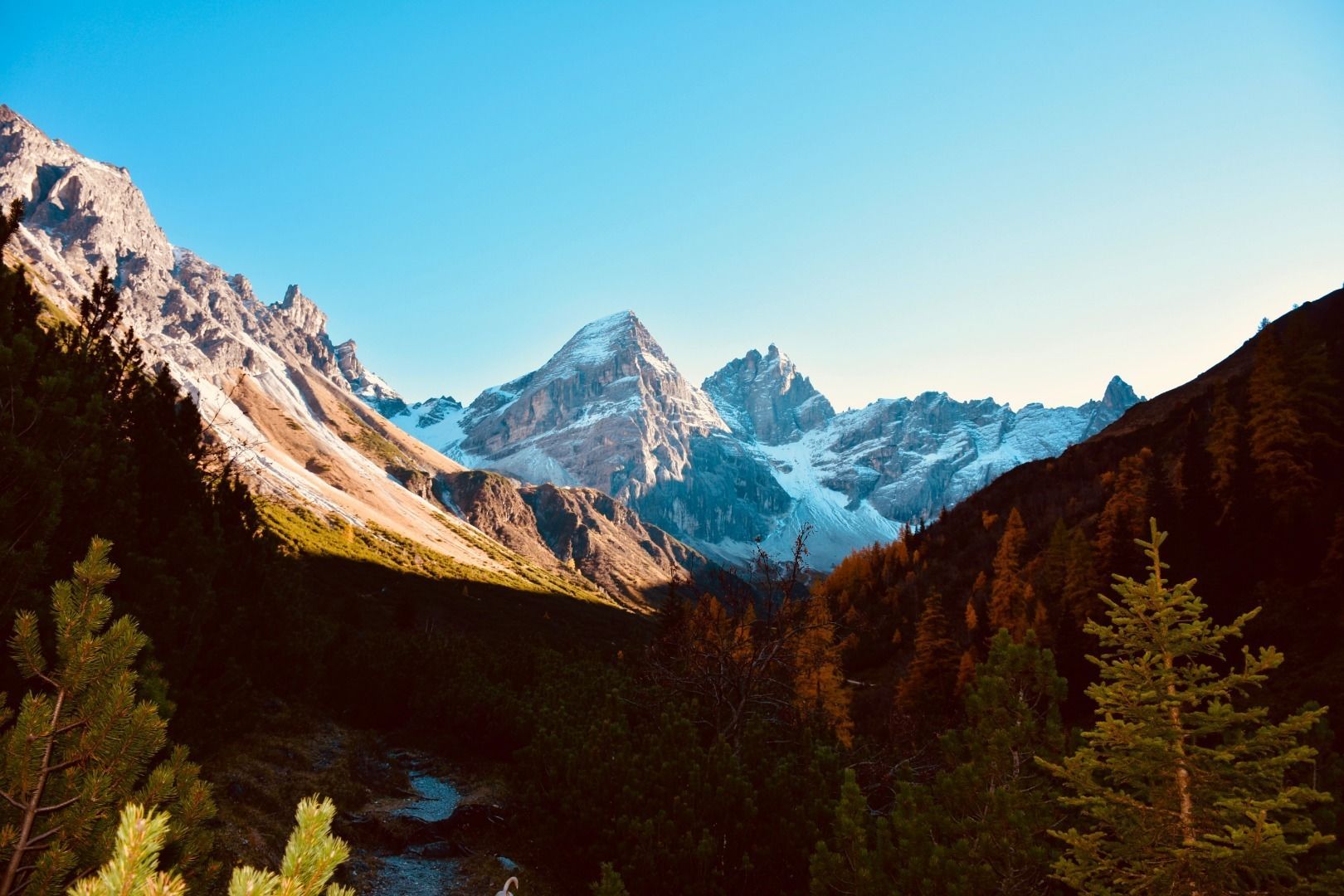 Vom Parkplatz 100 m Richtung Laponesalm nach Westen, dann links abbiegen in Richtung Gschnitzer Tribulaunhütte. Diesem Forstweg folgen bis auf 1980m Meereshöhe. Ab hier kann kurz weiter auf die Hütte gelaufen werden oder man macht noch einen Umweg: halb rechts auf einen Trail in Richtung Pflerscher Scharte und Gargglerin. Nach einigen Serpentinen dann wieder nach links Richtung Tribulaunhütte und unter der Nordwand der Tribulaune zur Hütte. Von der Hütte auf der orthographisch rechten Seite des Sandesbaches auf einem perfekten Trail wieder bis zum Ausgangspunkt zurück!