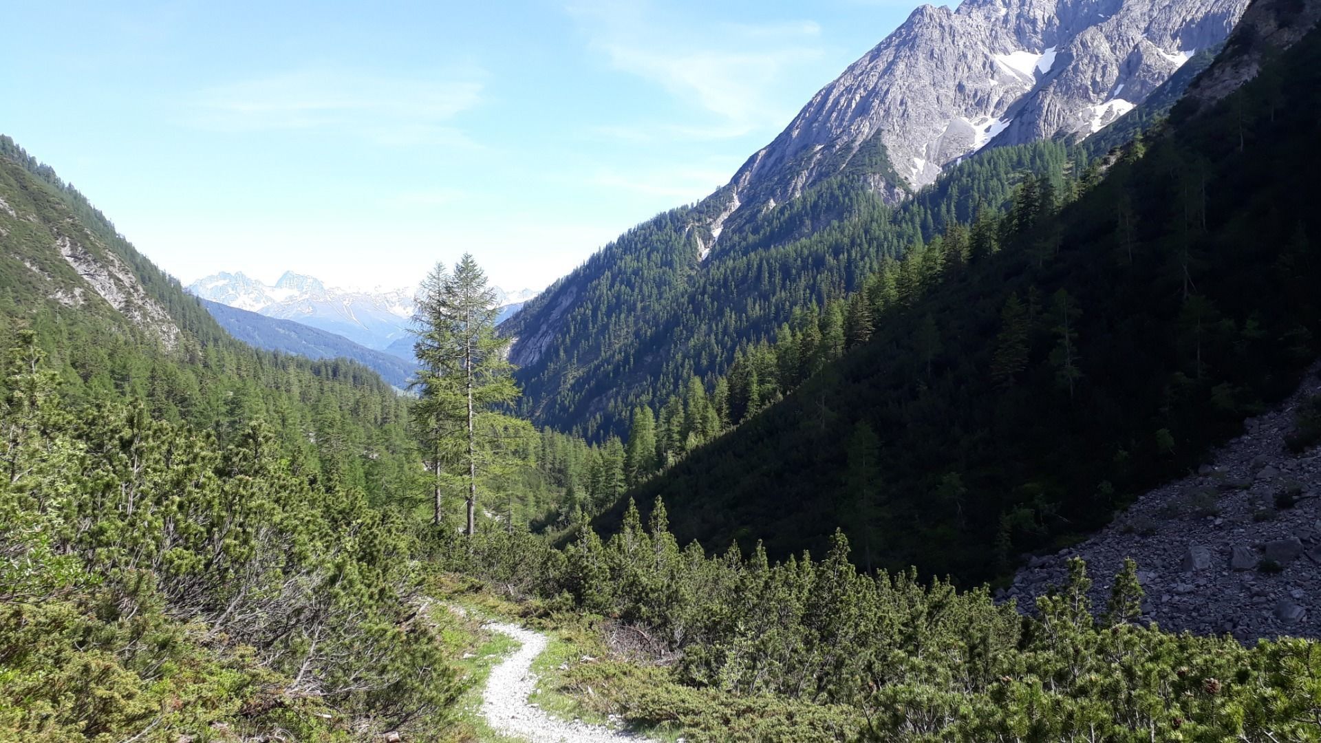Start ist beim Parkplatz Zams/ Burschlwand dem Ausgang des E5 Weitwanderweges. Man folgt kurz der Autobahnunterführung und sieht auf der linken Seite den Steig, Richtung Württembergerhaus. Diesem von nun an folgen. Anfangs steil über die Haselwand (sehr schöne Aussicht auf Zams) hinein ins Zammer Loch. Nach wenigen flachen Kilometern kommt man bei der Unterlochalpe (Jausenstation) dort der Beschilderung rechts zum Württembergerhaus folgen. Von nun an geht es stetig aufwärts bis man zum Württembergerhaus (2220 m) gelangt. Beim Württemberhaus vorbei, gabelt sich der Weg und wir folgen auf der rechten Seite Richtung Gebäudejoch. Bei dem Bergsee vorbei (Auf der Lacke) geht es abermals rechts bis zum höchsten Punkt der Route dem Gebäudejoch (2452 m). Von hier aus kann man den wunderschönen Downhill über das Obere und Untere Gebäud werfen. Auch die Steinseehütte wird erblickt. Bei der Hinterstarkalpe angelangt verbreitert sich der Weg (=Zufahrtsweg Steinseehütte) und man läuft durch das Starktal bis zur Alfutzalpe. Von hier kurz dem Forstweg folgend bevor es wieder auf einen wunderschönen, schnellen Downhill (Kopfsteig) Richtung Starkenbach geht.