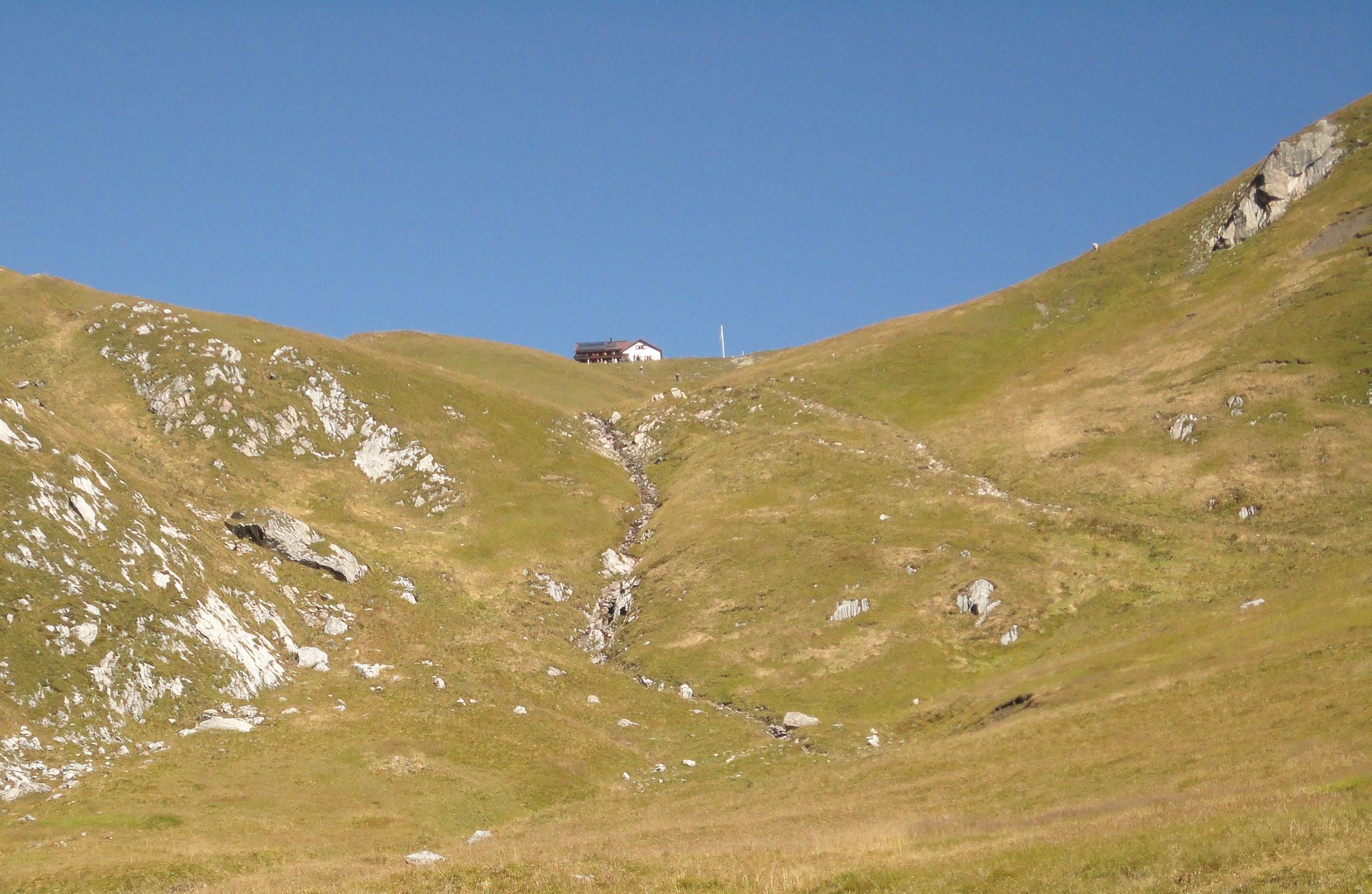 Das Kaiserjochhaus (2.310 Meter Seehöhe) ist eine gemütliche Schutzhütte am Lechtaler Hauptkamm zwischen Lechtal und Arlberg, Tirol.