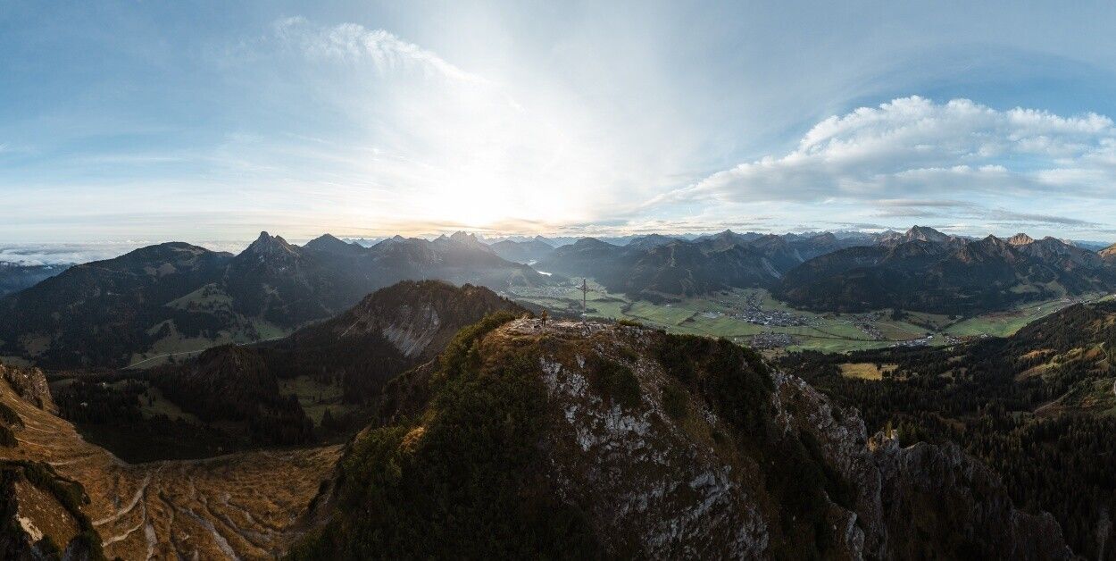 Aussichtsreiche Rundtour in den Allgäuer Alpen von Zöblen auf den Einstein, die mit einem besonders vielfältigen Landschaftsmix punktet. Aufstieg durch Wald- und Weidegebiet, bevor mit dem Lohmoos ein schönes, zugleich sensibles Hochmoor als stiller Zwischenhöhepunkt folgt. Der Schlussanstieg verläuft auf Wanderpfaden in Serpentinen und nahe am Grat und belohnt mit traumhafter Rund- und Weitsicht über das Tannheimer Tal und die Umgebung. Bei sehr klarer Sicht soll man sogar die Frauentürme von München erkennen. Dank südseitigem Aufstieg schon früh im Jahr schneefrei. Im Sommer ist ein früher Start zu empfehlen.