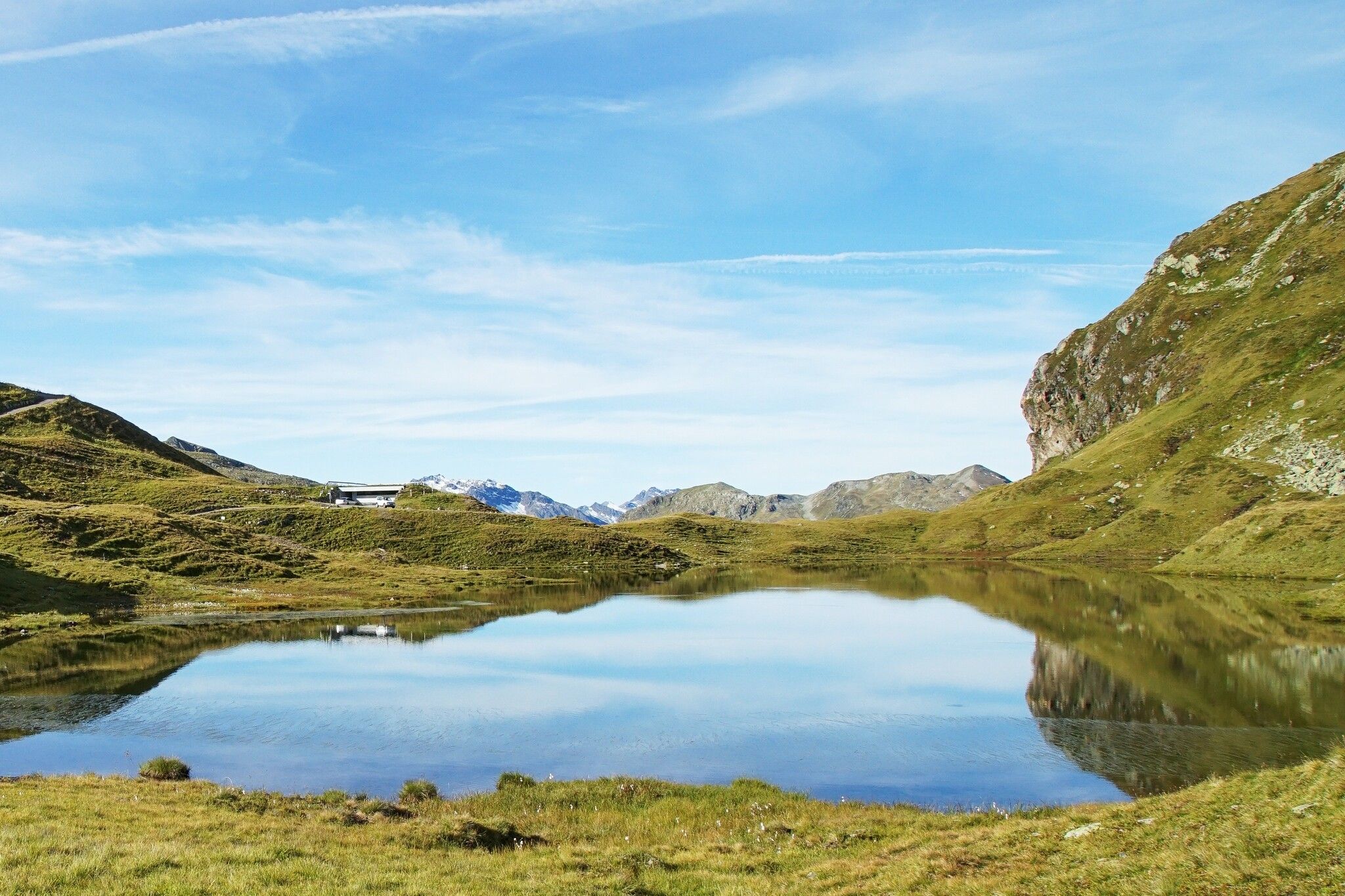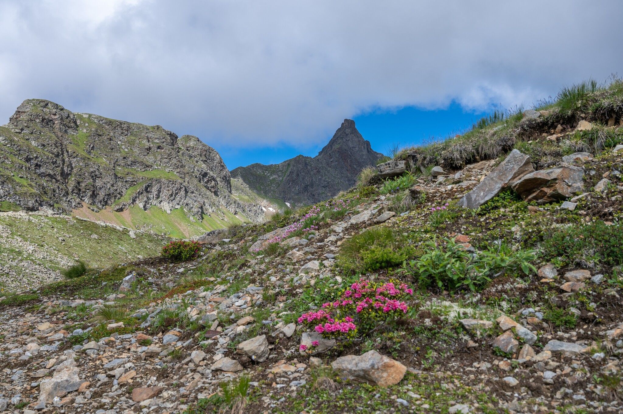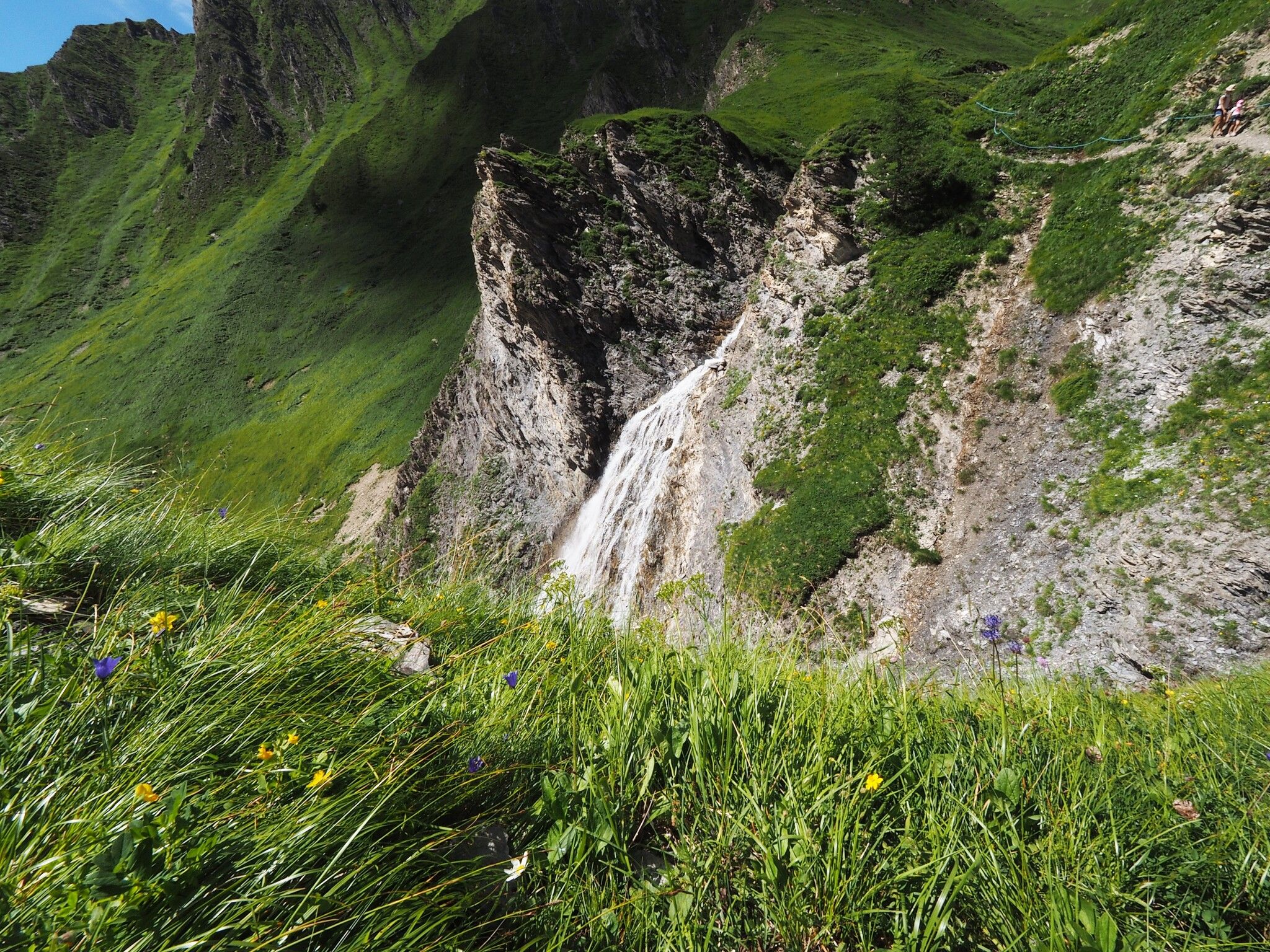 Ab den ersten grünen Bergwiesen wird der Weg leichter. Der letzte Höhepunkt dieser