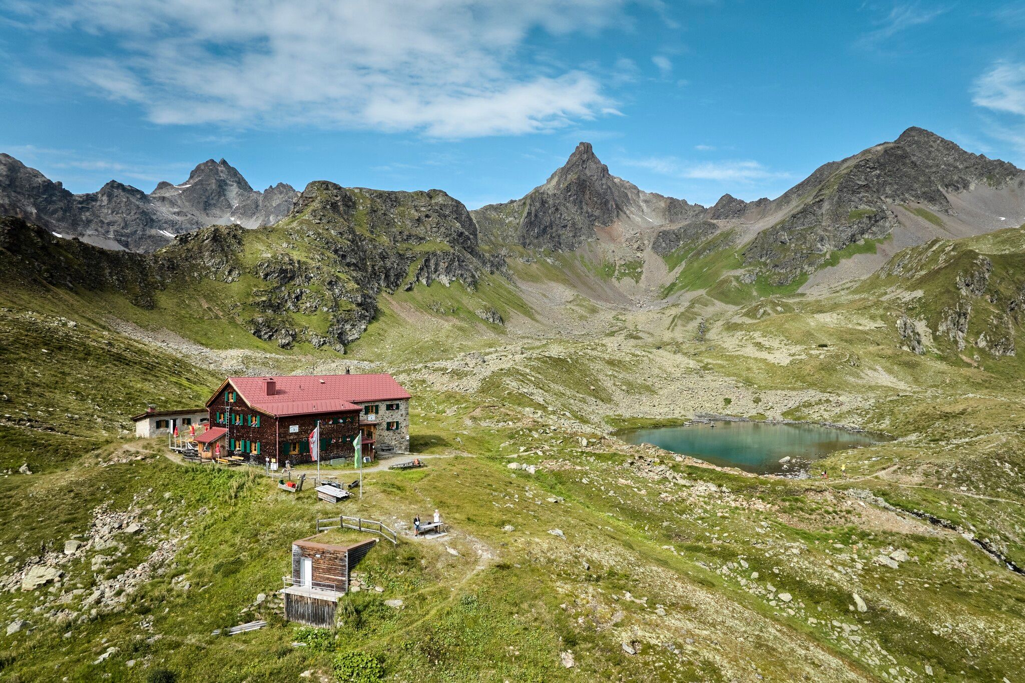 Von der Darmstädter Hütte beginnt der Wanderweg hinab ins Moostal. Nach kurzer Wegstrecke