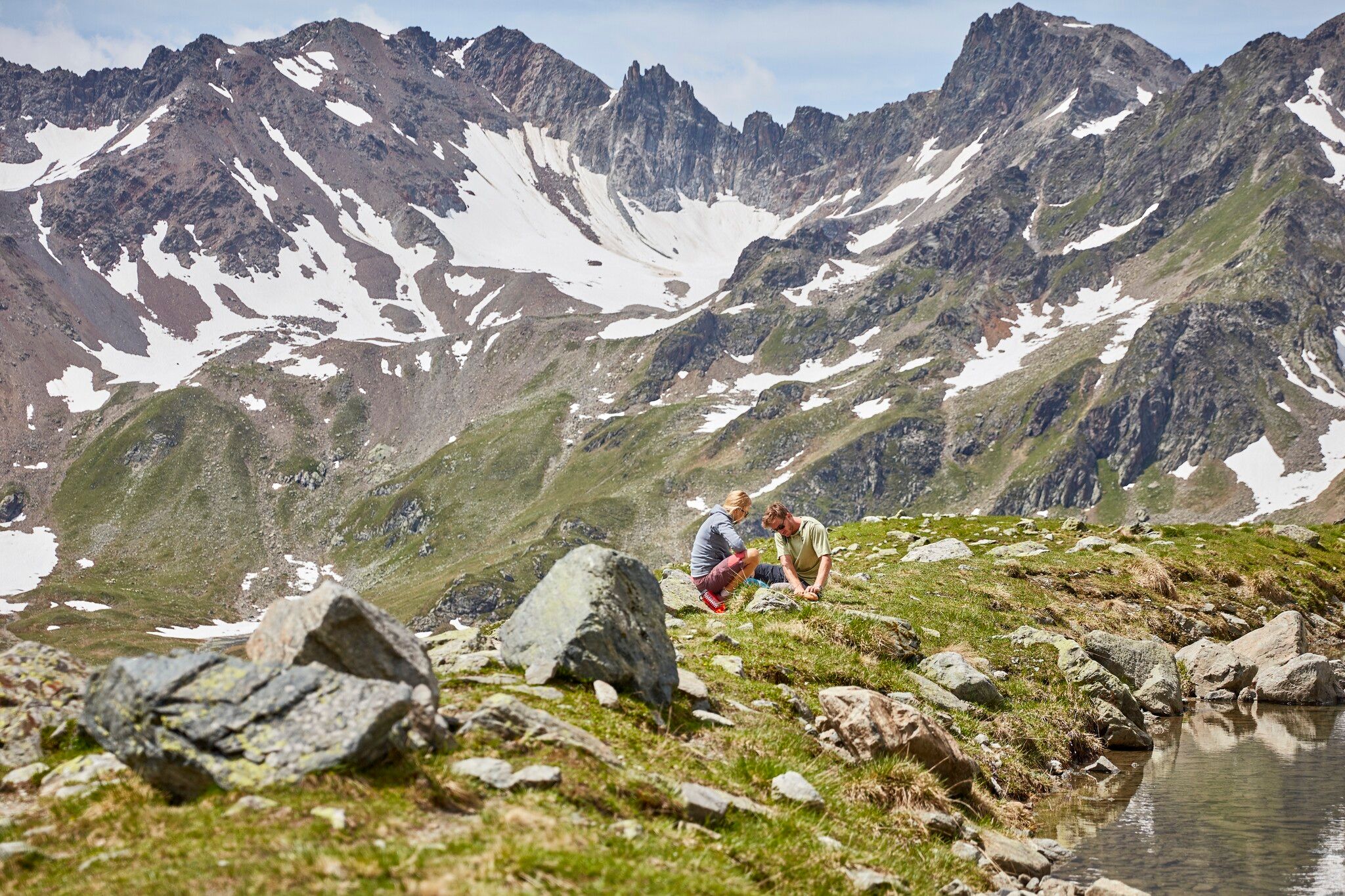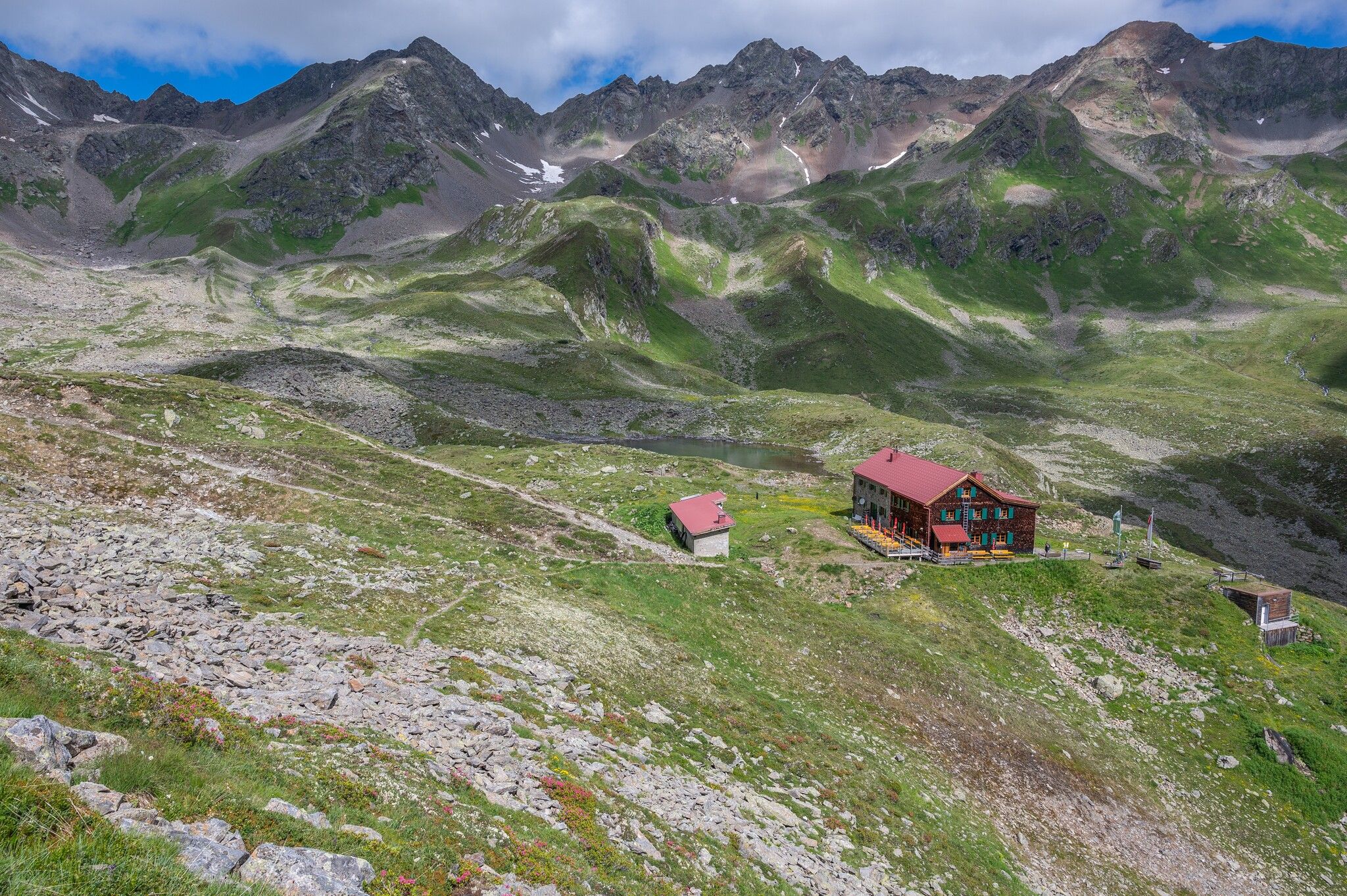 Richtung Fatlarspitze zur Kieler Wetterhütte auf 2.800 m. Von der Hütte führt ein anspruchsvoller,