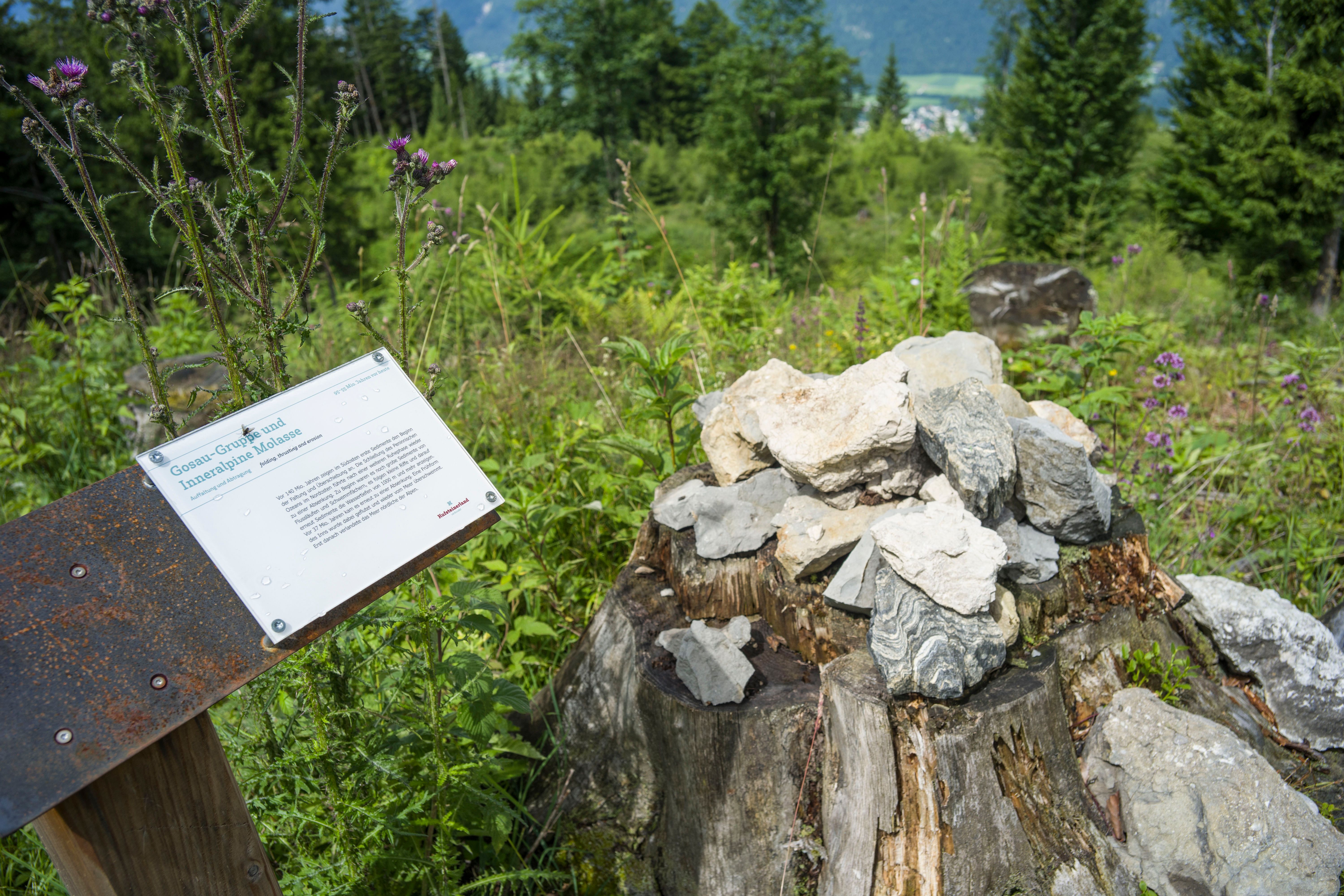 An 9 Stationen werden die Vorgänge, die zur Entstehung des Kaisergebirges geführt haben, vorgestellt. Man erfährt Wissenswertes vom Unterbau dieses Gebirges und von stetig laufenden Prozessen, die das „Gesicht der Erde“ noch immer verändern, von vergangenen Kontinenten und Gebirgen, von Meeren, die sich öffneten und wieder schlossen. Zurück blieb eine Haut mit Narben und Falten, unsere Erdoberfläche.