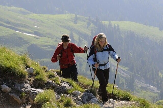 Wegbeschreibung:Vom Westparkplatz in Nesselwängle geht es oberhalb der Ortschaft ca. 1 km relativ flach Richtung Osten. Danach führt der Weg serpentinenmäßig mit einigen Treppenstufen, aber gut begehbar, bis zum Gimpelhaus. Belohnt wird die Wanderung mit tollen Aussichten. Auch das Gimpelhaus mit seiner Architektur und Ausstattung würde man hier oben nicht unbedingt vermuten. Die Kletterberge der Tannheimer Gruppe im Hintergrund des Gimpelhauses tun das Ihrige, um diesen Punkt des Tannheimer Tales so schön wirken zu lassen. Das Gimpelhaus ist Ausgangspunkt für viele Wanderungen, Berg- und Klettertouren. Gimpel und Rote Flüh, Friedberger Klettersteig oder der Klettersteig an der Köllenspitze und die umliegenden Hütten sind nur einige davon. Der Abstieg nach Nesselwängle erfolgt über den gleichen Weg, den wir gekommen sind, da uns der Weg über die Schneetalalm zu weit erscheint. Gesamt Gehzeit ca. 5 1/4 Stunden.