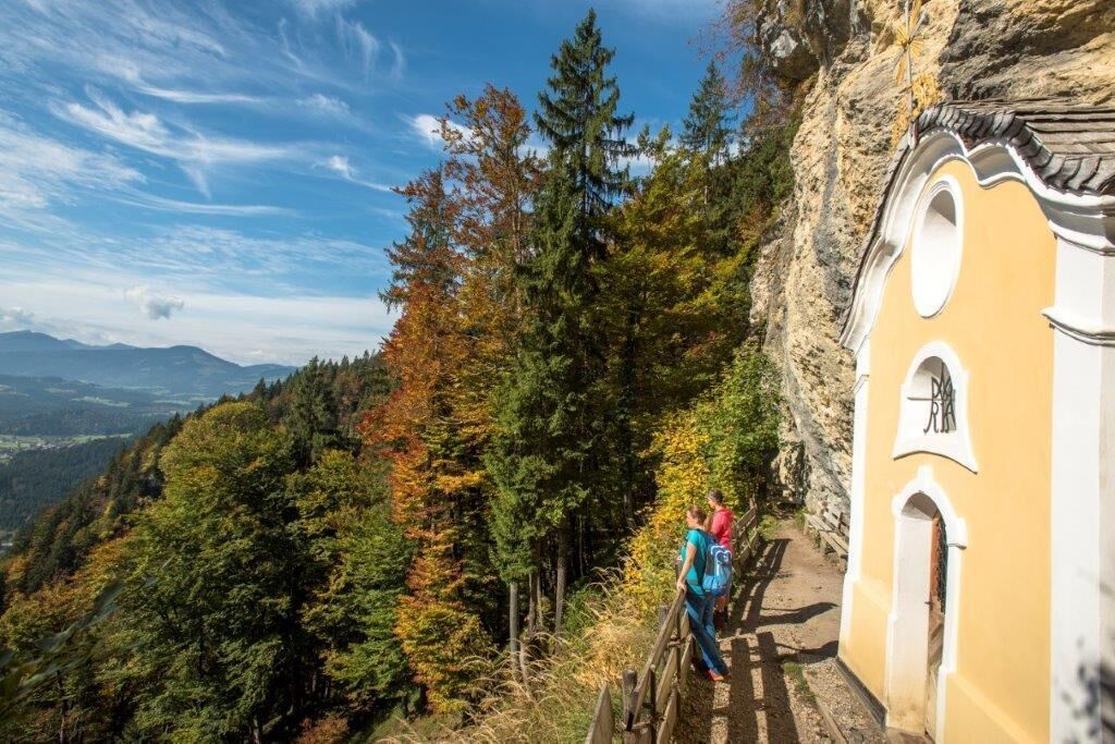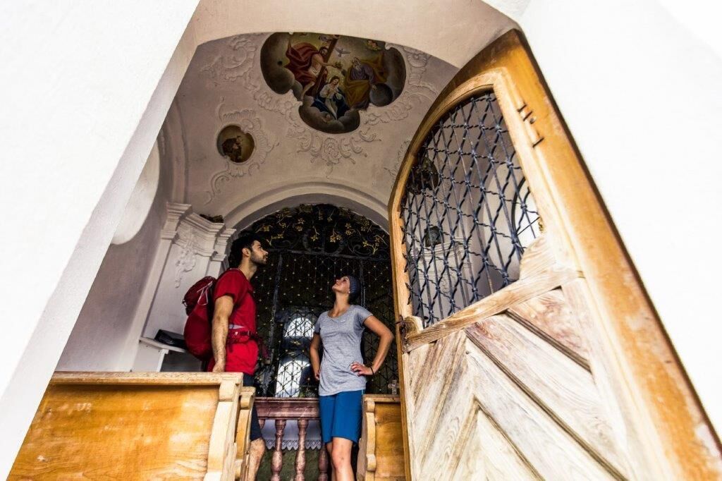 Zunächst wandern Sie über eine große Weidefläche, die hin und wieder einen Blick auf den Ort St. Johann in Tirol zulässt. Der Weg mündet in den vom Künstler Horst Pali gestalteten Kreuzweg hinauf zur Einsiedelei Maria Blut. Diese Eremitage wird seit 300 Jahren von Einsiedlern bewohnt und betreut. Durch ein Waldstück führt der Wanderweg steil hinauf zur Gmailkapelle am Niederkaiserkamm. Der Weg bietet immer wieder schöne Blicke auf das Kitzbüheler Horn sowie auf den Talkessel von St. Johann nach Oberndorf. Am Grat angekommen erhaschen Sie einen Blick hinunter nach Kirchdorf. Die Gmailkapelle ist ein barockes Bauwerk mit Rokoko-Stuckaturen im Inneren des Gebäudes. Ein wahrer Kraftplatz!