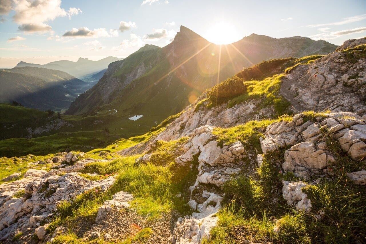 Kurzbeschreibung:Wir wandern auf dem Grenzgänger-Etappenwandersteig von Hinterstein über die Willersalpe zum Schrecksee und mit dem Blick auf drei Seen zur Landsberger Hütte. Erlebniswert: *****Empfohlene Jahreszeiten:JuniJuliAugustSeptemberOktoberEigenschaften:EtappentouraussichtsreichEinkehrmöglichkeitgeologische Highlightsbotanische Highlightsfaunistische HighlightsGipfel-Tour