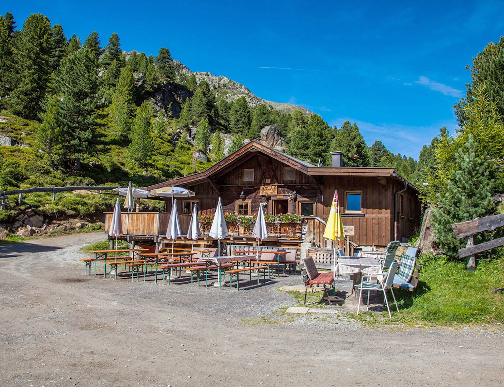 Variante 1: Die Wanderung startet vom Parkplatz am Ortsende von Gries. Man folgt den Wiesen entlang in Richtung „Vögelasbrücke“. Dort vorbei biegt man nach den ersten Kehren an der Kreuzung rechts ab. Der breite Forstweg führt teilweise durch Wald, zuletzt durch Almwiesen zur urigen Nisslalm.
