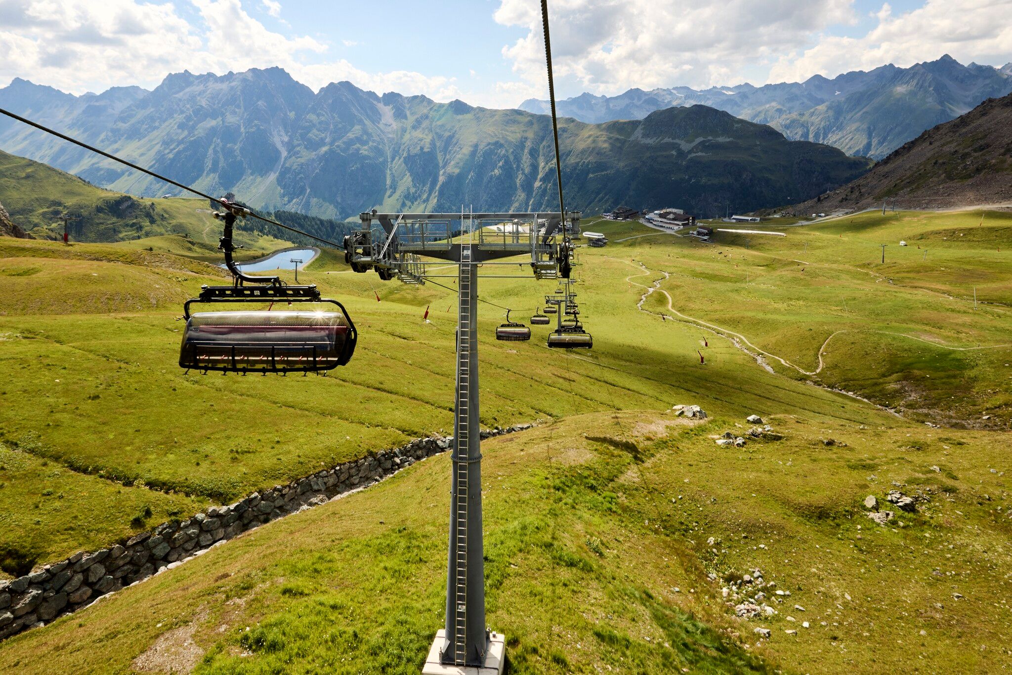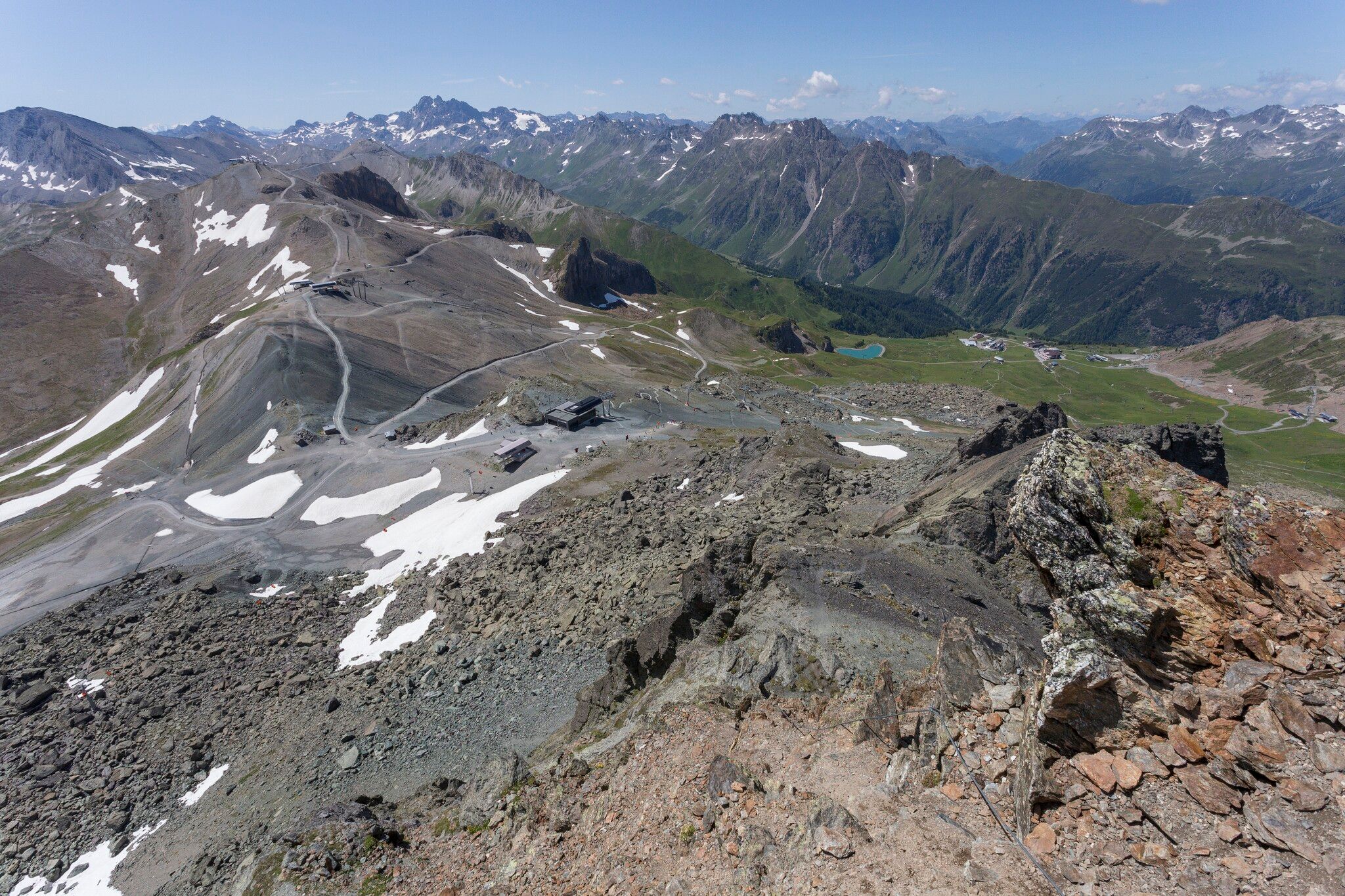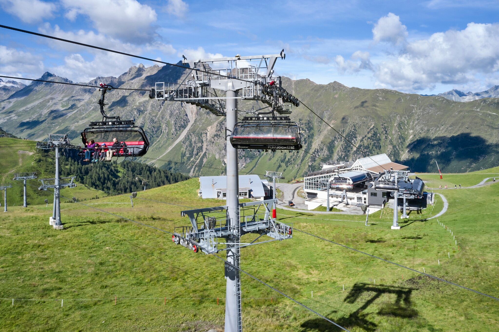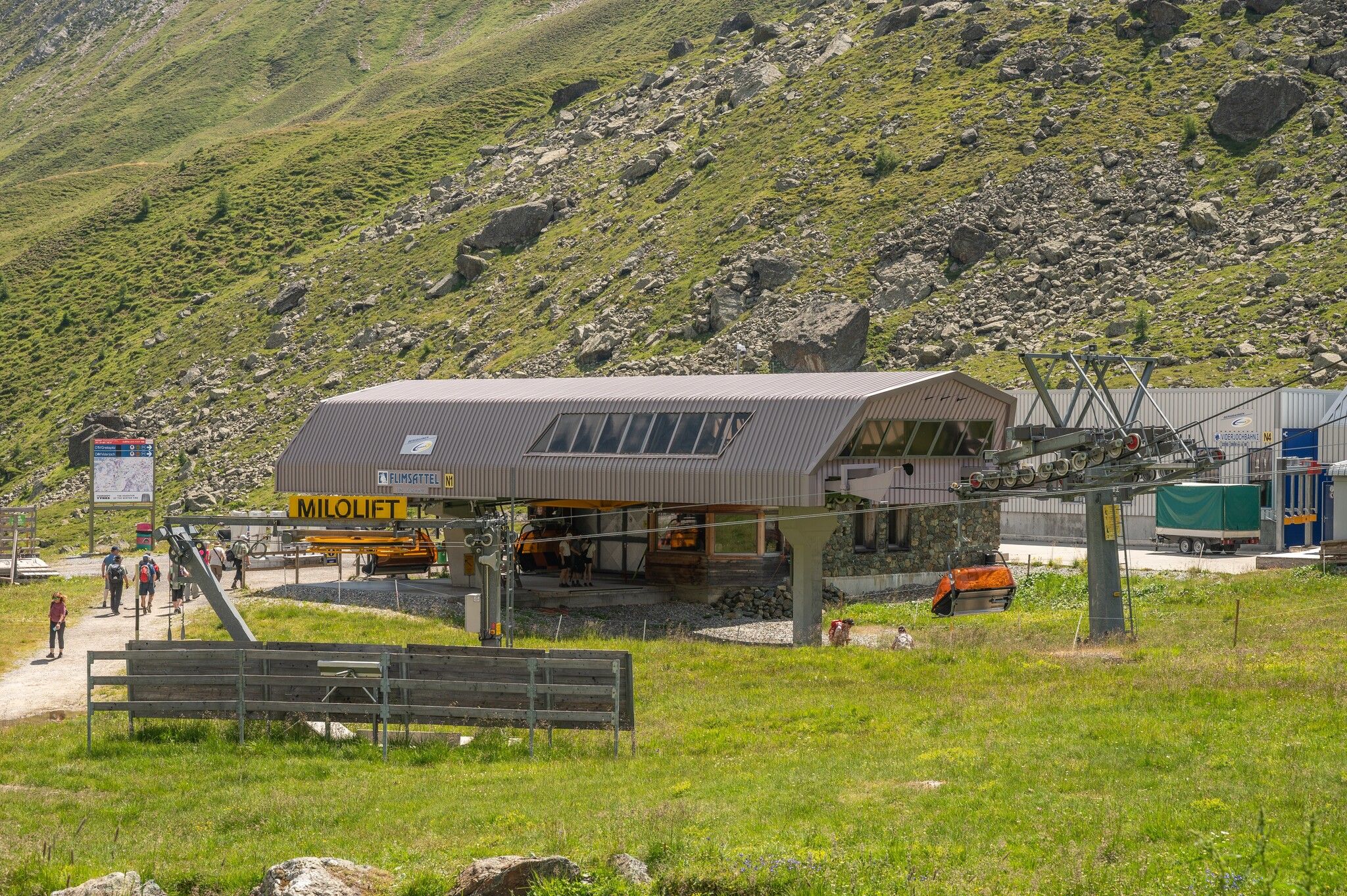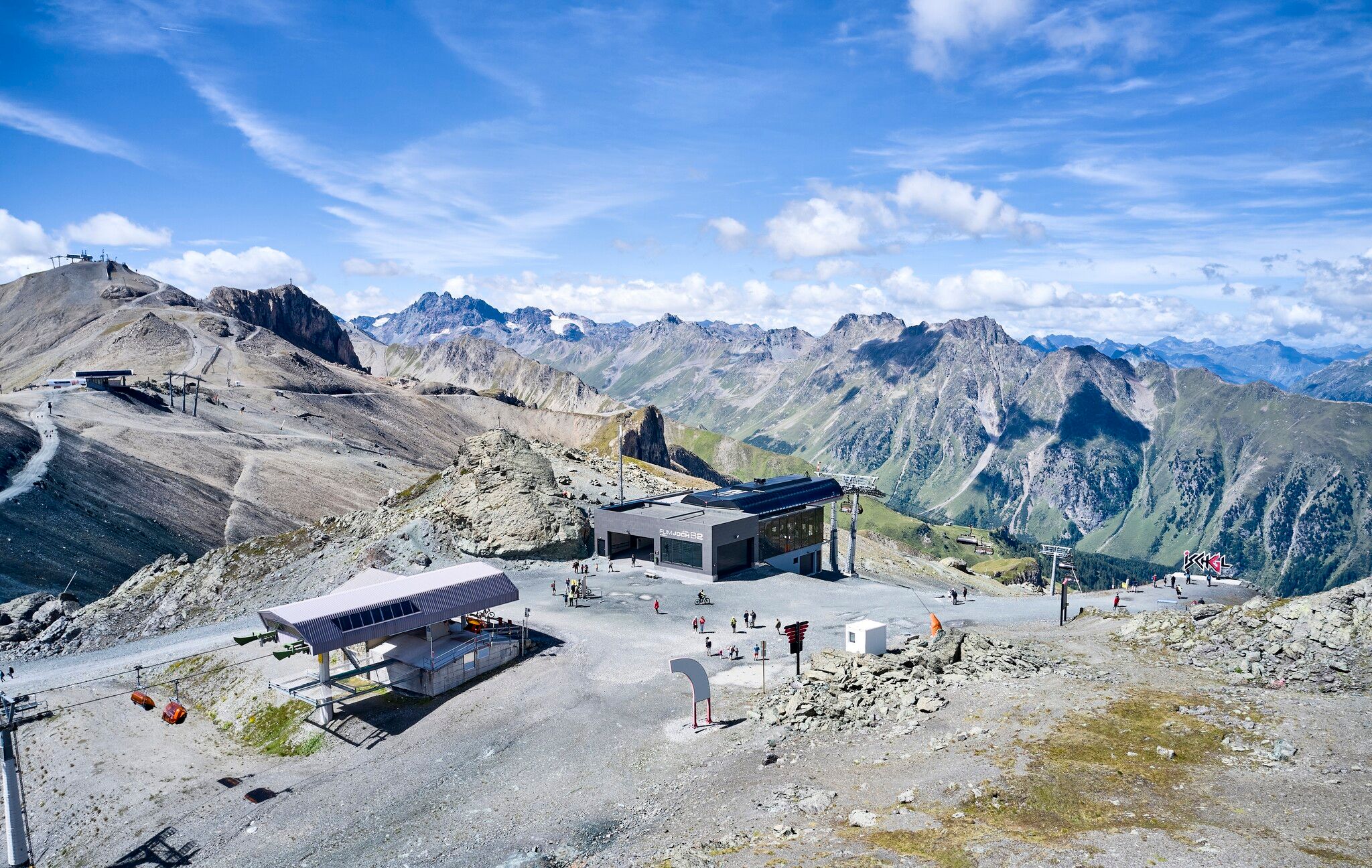 Variante ohne Lifte: Rund um den Mullersattel führen die Wegweiser Richtung Flimjoch auf 2.757 m. Ab dem Flimjoch geht es bergab, über die obere Velillalpe auf 2.061 m führen markierte Wege, Fahrwege und Pistenabschnitte hinunter ins Tal nach Ischgl.
