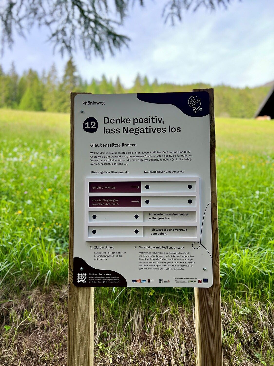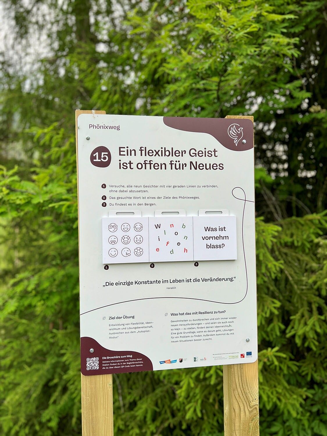 Resilienz - ein Begriff, der die Fähigkeit beschreibt, schwierige Lebenssituationen anzunehmen, sie gut zu überstehen und an den gewonnenen Erfahrungen zu wachsen. Resilienz ist trainierbar und dafür wurde der Phönixweg kreiert. Das Leitbild ist Phönix, der Vogel , der nach der griechischen Mythologie seiner Asche entstiegen ist - ein Sinnbild für Zuversicht und Aufbruch in ein neues besseres Sein. Der Weg stellt eine Herausforderung im Sinne eines ganzheitlichen Trainings von Körper Geist und Seele dar.