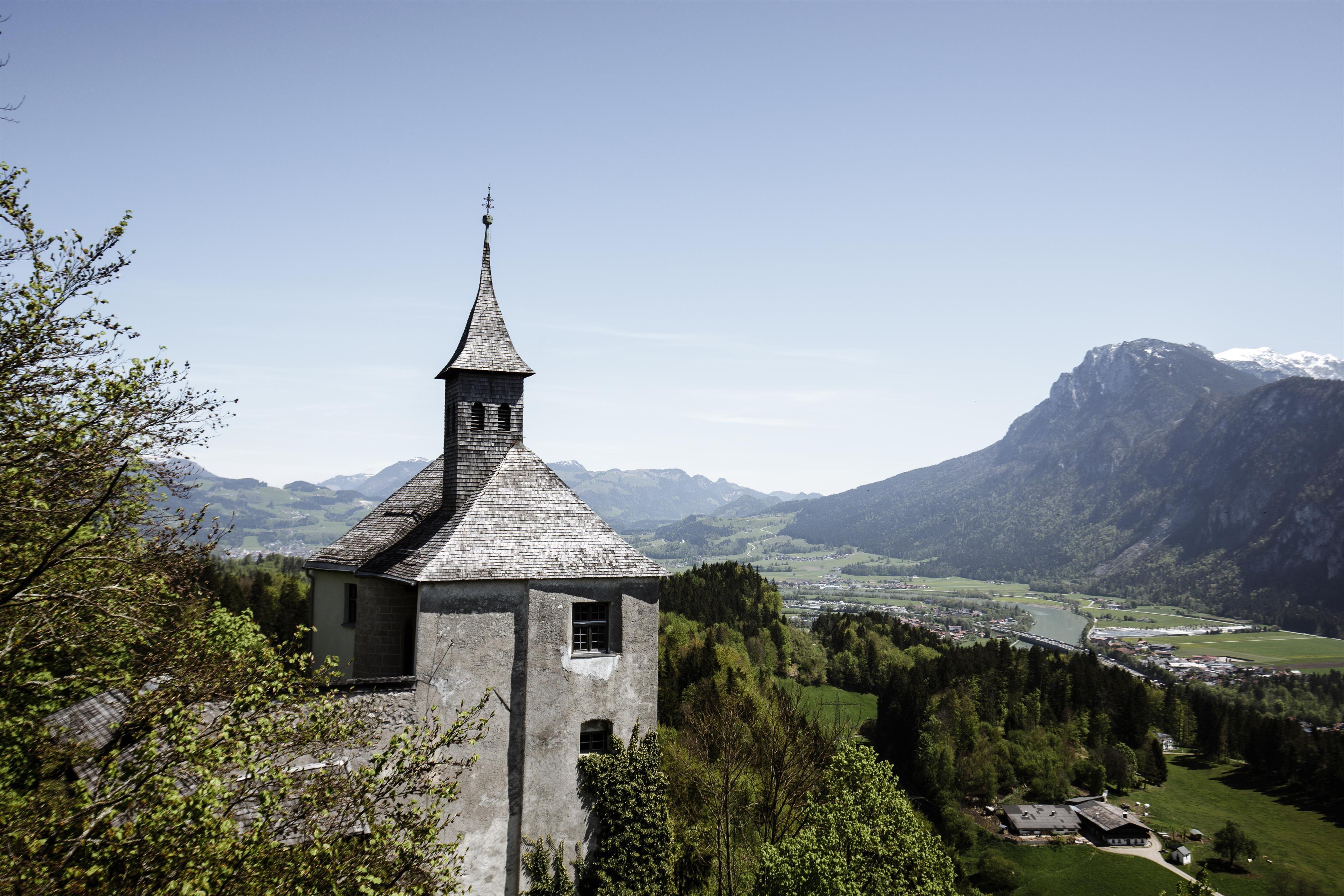 Die kleine Wallfahrtskapelle sowie thront über dem Tal, umgeben von alten Bäumen und einer Atmosphäre tiefer Ruhe. Vom Burgfried aus eröffnet sich ein beeindruckendes Panorama über das Kufsteinerland – ein Ort, der zum Verweilen, Innehalten und Staunen einlädt.