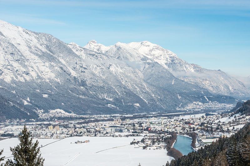 Direkt am Parkplatz der Burg Freundsberg befindet sich der Einstiegin den Schiller-Mensi-Weg. Diesem folgend geht es in Richtung Pill, immer wieder mit herrlichem Ausblick über das verschneite Tal, insbesondere dem winterlichen Karwendel. Der Weg verläuft unmerklich abwärts bis zur Überquerung der asphaltierten Arzbergstraße, auf den Björnson Weg und anschließend auf den Piller Hubertusweg in Richtung Ortsmitte Pill. Zurück geht es entweder zu Fußoder mit dem Bus.
