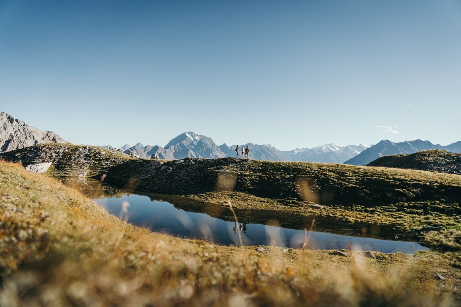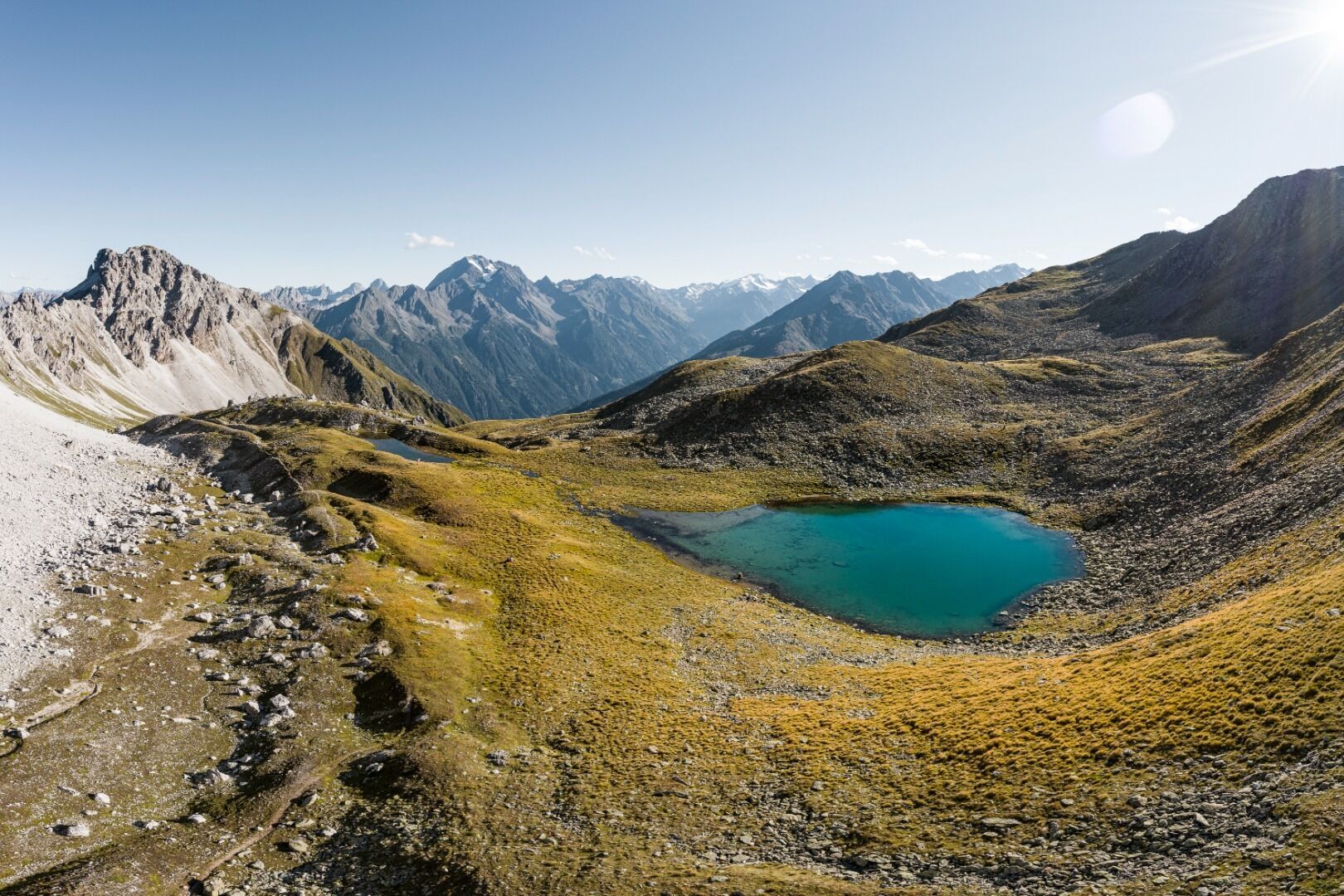 Eindrucksvoll kann man hier die unterschiedlichen Gesteinsformen nebeneinander sehen: die ruhigen Formen des Urgesteins mit den saftigen Böden und der üppigen Vegetation, haarscharf daneben die markante Trennlinie zu den fahlgrauen Schutthängen des Kalkgesteins, in denen sich nur spärlich einige Blumen und dürftiger Graswuchs das Leben sichern. Die Wanderung bietet wunderbare Ausblicke!Von der Bergstation der Schlicker Bergbahnen am Kreuzjoch führt der Höhenweg angenehm ansteigend in wunderbarem Panorama hinauf zum Niederen Burgstall und weiter zum Schlicker Schartl (2.456m). Von hier ist der See in wenigen Minuten erreicht. Die Gehzeit zum See beträgt ca. 2 Stunden. Als Rückweg nach Fulpmes bietet sich der Abstieg über die Schlicker Alm an. Der Panoramasee, welcher am Weg zur Mittelstation "Froneben" liegt, bietet eine schöne Aussicht. Eine weitere Wandermöglichkeit ist der Rückweg über die Starkenburger Hütte zurück zur Bergstation Kreuzjoch. Zur Einkehr laden die Schlicker Alm, Froneben Alm, Panoramarestaurant Kreuzjoch und die Starkenburger Hütte.