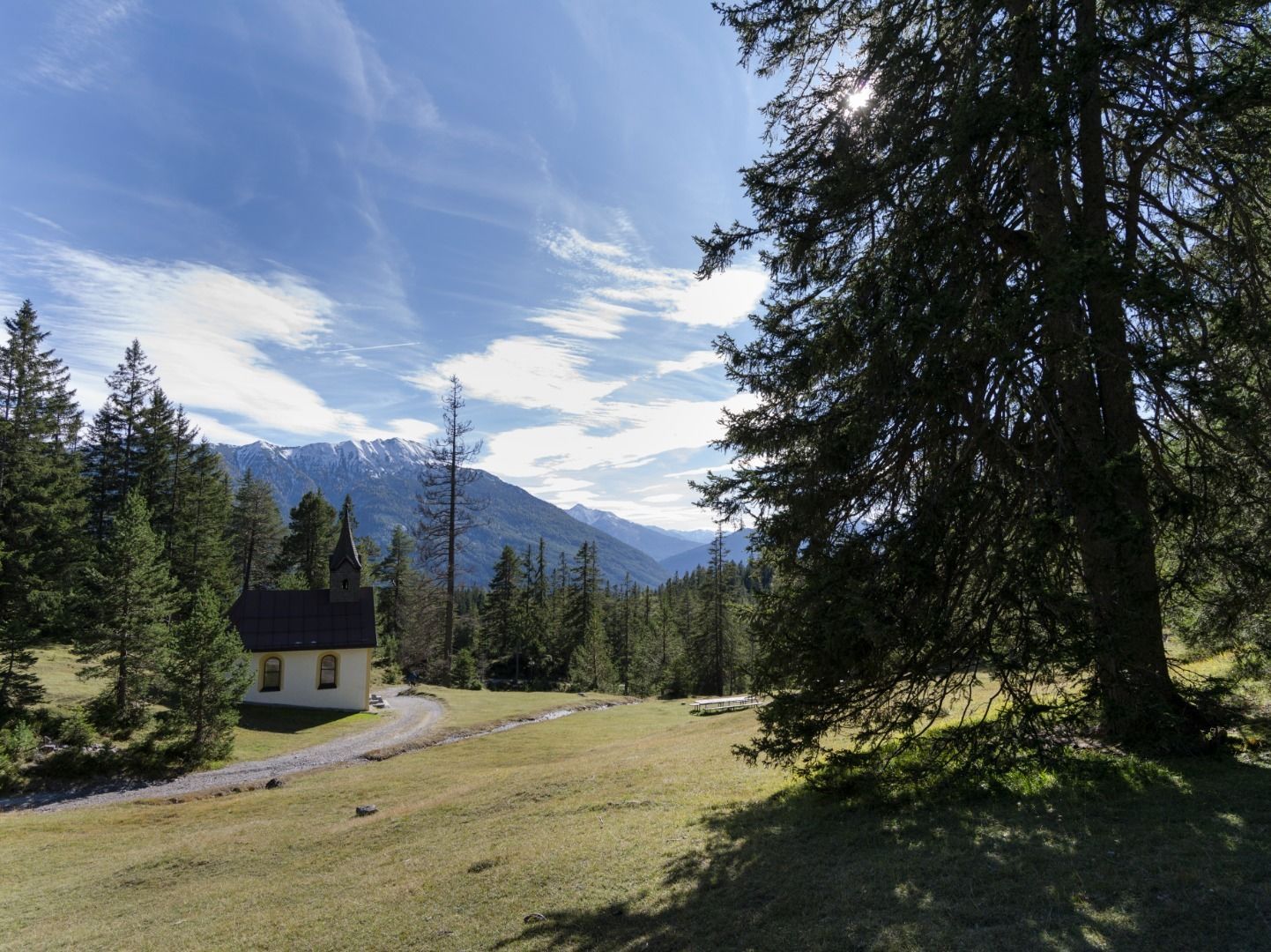 Zum Aufwärmen starten wir den Weg gemütlich auf einer kleinen Forststraße entlang des Starkenbergerpanoramawegs. Bei der kleinen Jausenstation Sinnes Waldrast geht es gesäumt von kleinen Opferstöcken weiter Bergauf. Der Pfad führt dich durch einen lichten Föhrenwald und verbreitet eine ruhige Atmosphäre. Der Aufstieg wird hin und wieder mit einem wunderschönen Blick ins Tal und den umliegenden Bergen belohnt. Weiter geht es vorbei an einem kleinen Bach, bis du dein Ziel die kleine Wallfahrtskapelle Sinnesbrunn erreichst. Dieser Idyllische Platz und die liebevolle Kapelle lädt zu einer kleinen Pause ein. Ein einzigartiges Erlebnis erwartet dich, wenn du die Glocke bei der Kapelle ziehst. Dieser Brauch dient nicht nur spirituellen Zwecken, sondern dient auch als Ankündigung für deinen Rückweg. Das sanfte Klingen der Glocke verleiht der Wanderung eine zusätzliche magische Note.