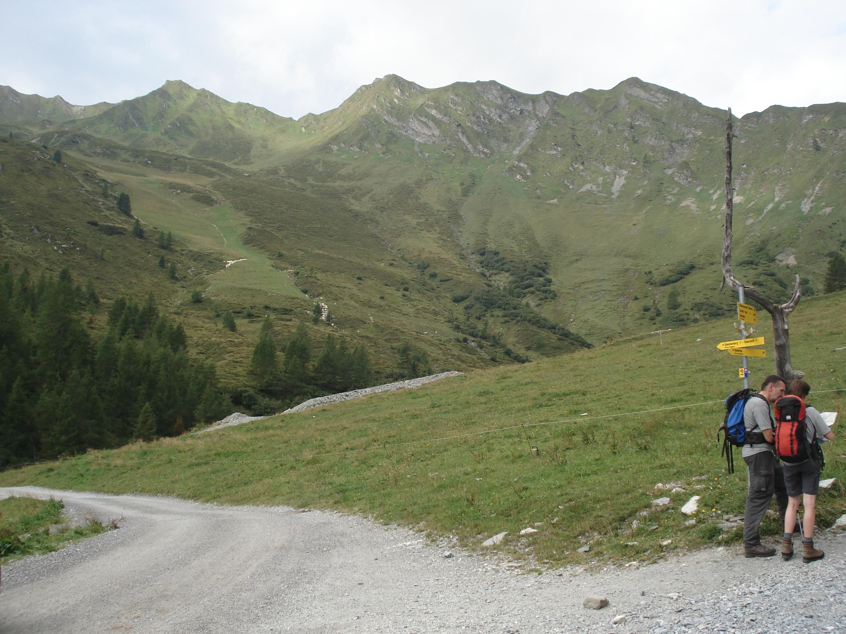 Bei der Bergstation rechts abzweigen und auf dem Güterweg (AV-Weg Nr. 324) absteigen bis zum Weitentalbach, diesen überqueren und auf dem Weg Nr. 15 Abstieg nach Hintertux.