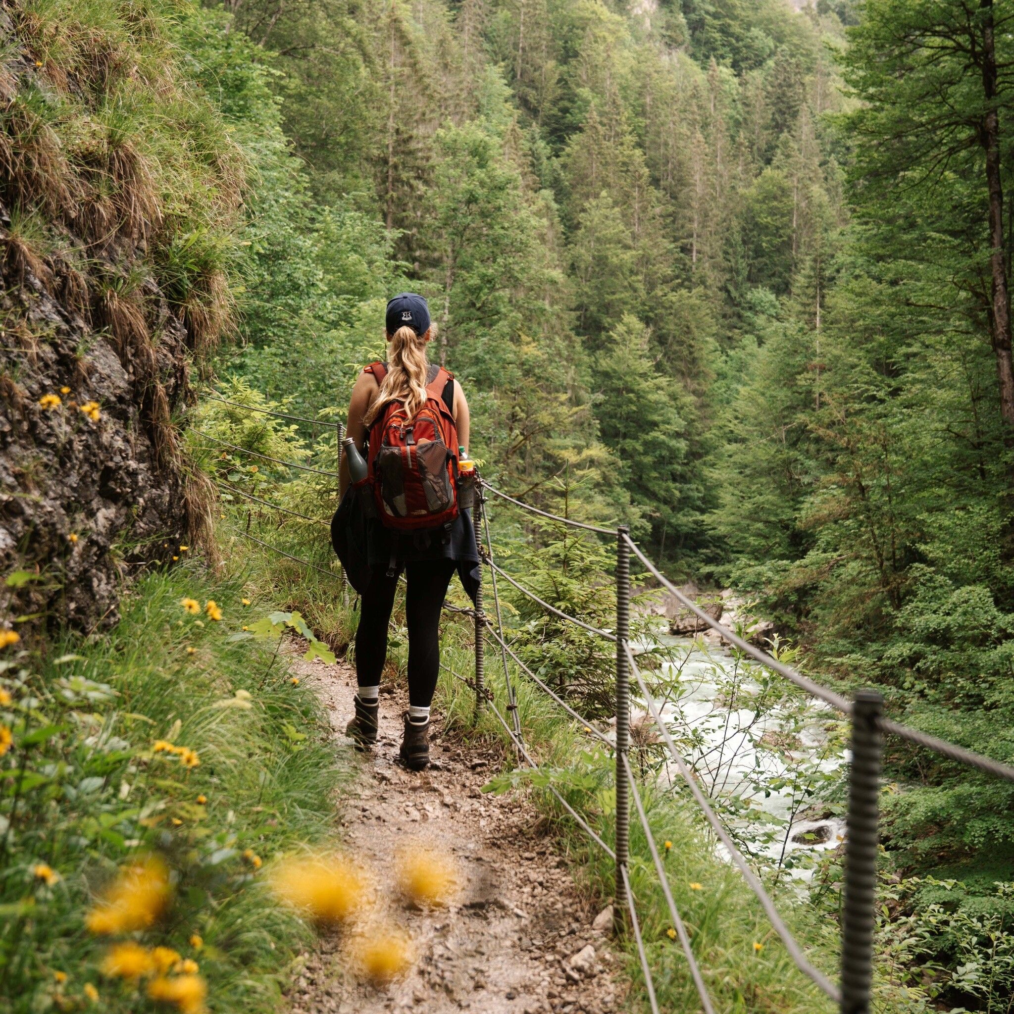 Vom Parkplatz der ehemaligen Sonnwendjochbahn führt ein rund 3,5 km langer Fußweg oberhalb der gesperrten Straße bis zum Eingang der Tiefenbachklamm. Die Strecke ist für Autos und Radfahrer nicht zugänglich, aber ideal für Wanderer – ruhig, aussichtsreich und gut begehbar.
