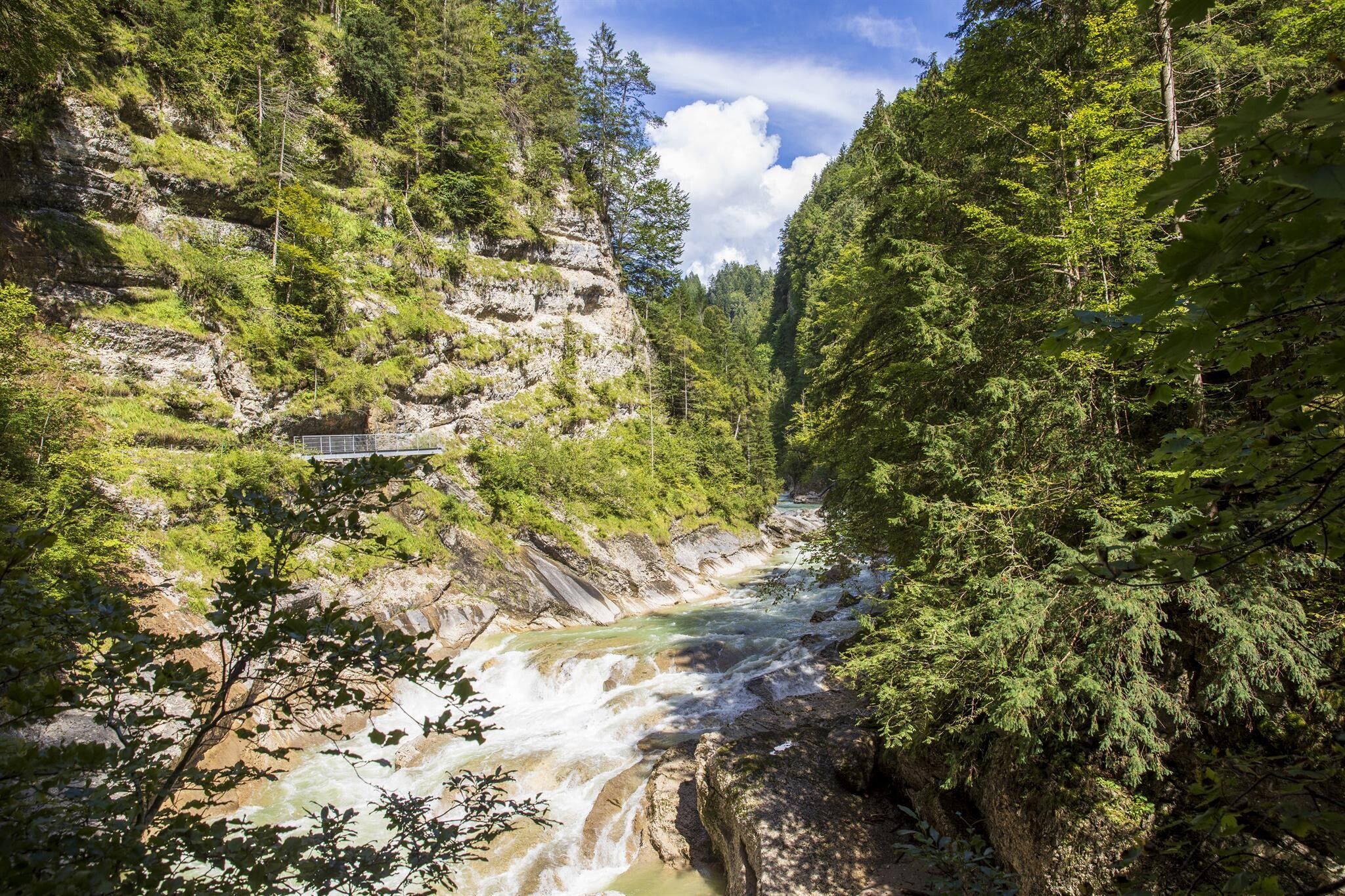 Ab dem Klammeingang beginnt das eigentliche Highlight: ein spektakulärer Weg durch die enge, wildromantische Klamm mit tosenden Wassern, kleinen Wasserfällen und einer Aussichtsplattform, die den Blick auf die Kraft des Wassers freigibt. Trittsicherheit ist gefragt, aber der Weg ist gut gesichert.