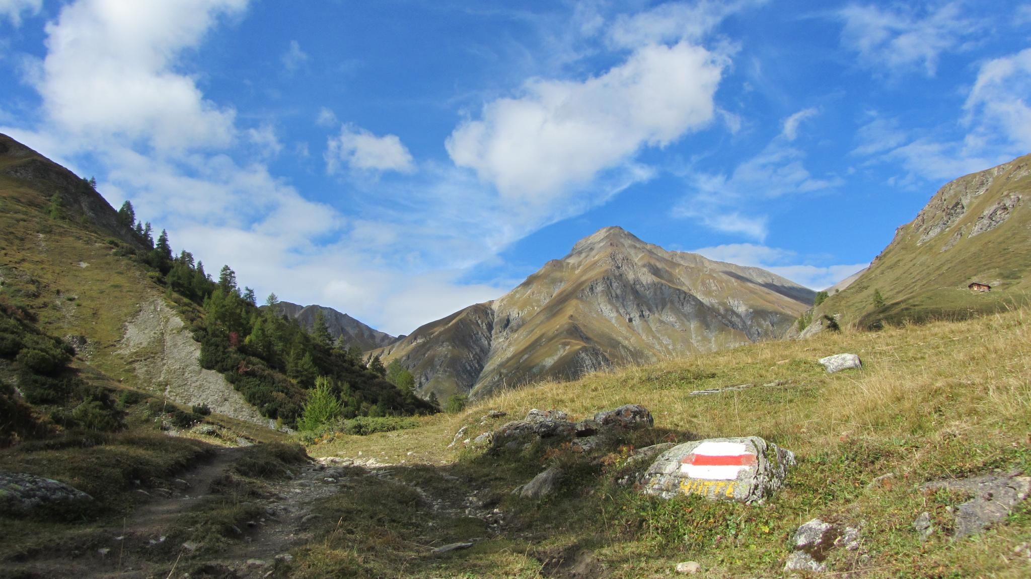 Transfer mit dem PostAuto von Sent in das Val Sinestra (1524 m ü. M.). Die Wanderung beginnt beim Kurhaus Val Sinestra. Bis zum Hof Zuort wird der Bach La Brancla mehrmals überquert, dabei geht es über zwei Hängebrücken. Beim Hof Zuort beginnen die Blumen- und Kräuterwiesen. Ab Griosch rund 500 Meter talauswärts wandern, bevor der Weg Richtung Fuorcla Maisas abzweigt. Via Alp Pradgiant steigt man stetig aufwärts. Die Vegetation wird weniger, je näher der höchste Punkt dieser Etappe kommt, der Fuorcla Maisas (2907 m ü. M.). Auf dem Pass zwischen Muttler und Stammerspitz öffnet sich der Blick in das Val Maisas. An der Westflanke des Muttlers, dem höchsten Berg von Samnaun, geht es steinig und steil hinunter bis zum Rossboden. Ab hier nimmt die Vegetation wieder Überhand und begleitet die Wanderer durch das Val Maisas bis nach Samnaun Dorf.