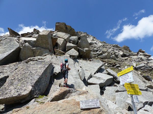 Zu Beginn steigen wir von der Richterhütte knapp 200 Höhenmeter zur Talstation der Materialseilbahn ab und münden im „Keesboden“ linkerhand in den schön angelegten Steig ein. Mehrmals die rauschenden Bäche querend, führt uns der Weg über dem Rainbachtal zur Roßkarlacke, einem kleinen Bergsee auf knapp 2.300 m. In angenehmer Steilheit erreichen wir nach schönem Aufstieg durch das weit ausladende Roßkar nach 400 Höhenmetern die zuletzt steile Roßkarscharte (2.689 m).