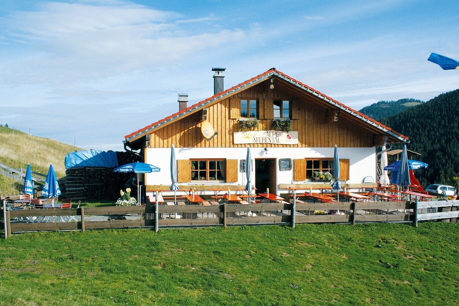 Vom Parkplatz bei den Skiliften geht es in Richtung Kirche. Am Musikpavillon rechts abbiegen und der Straße bis zum Ortsteil Langenschwand folgen, dann weiter bis zum Ortsende. Hier zweigt der Weg nach links zur Alpe Stubental ab. Nach einer Einkehr geht es entweder zu Fuß oder mit der Rodel, die auf der Hütte geliehen werden kann, zurück nach Langenschwand bzw. Jungholz.