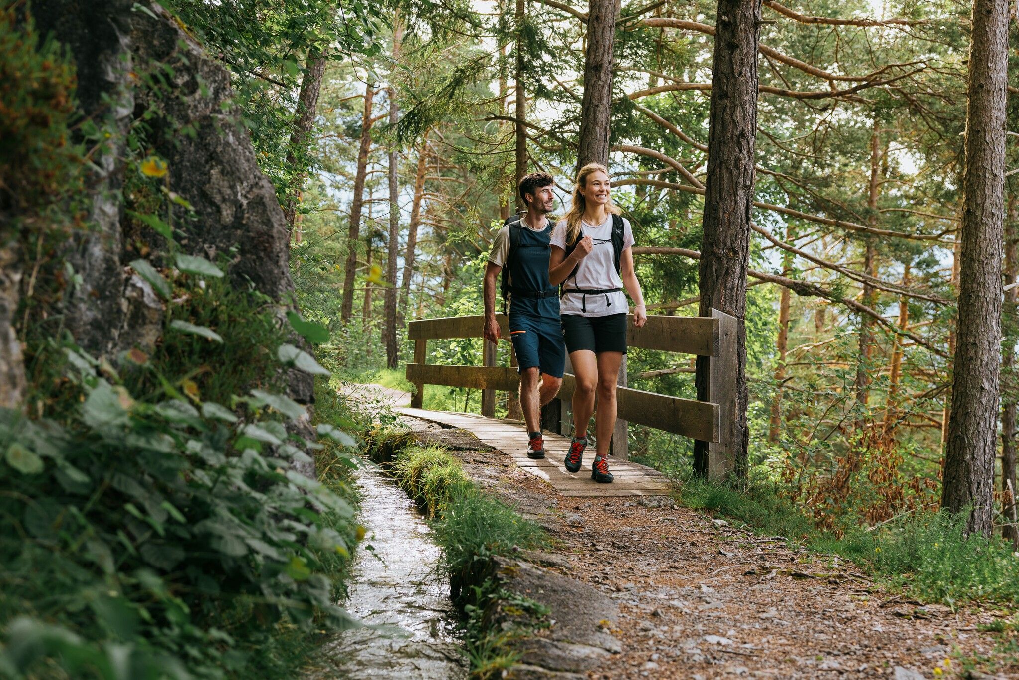 Der Weg macht sichtbar, wie durchdacht und nachhaltig dieses jahrhundertealte System funktioniert: Das Wasser fließt allein durch Schwerkraft, wird über Piezen gezielt verteilt und versorgt Obstgärten, Wiesen und Felder genau dort, wo es gebraucht wird.