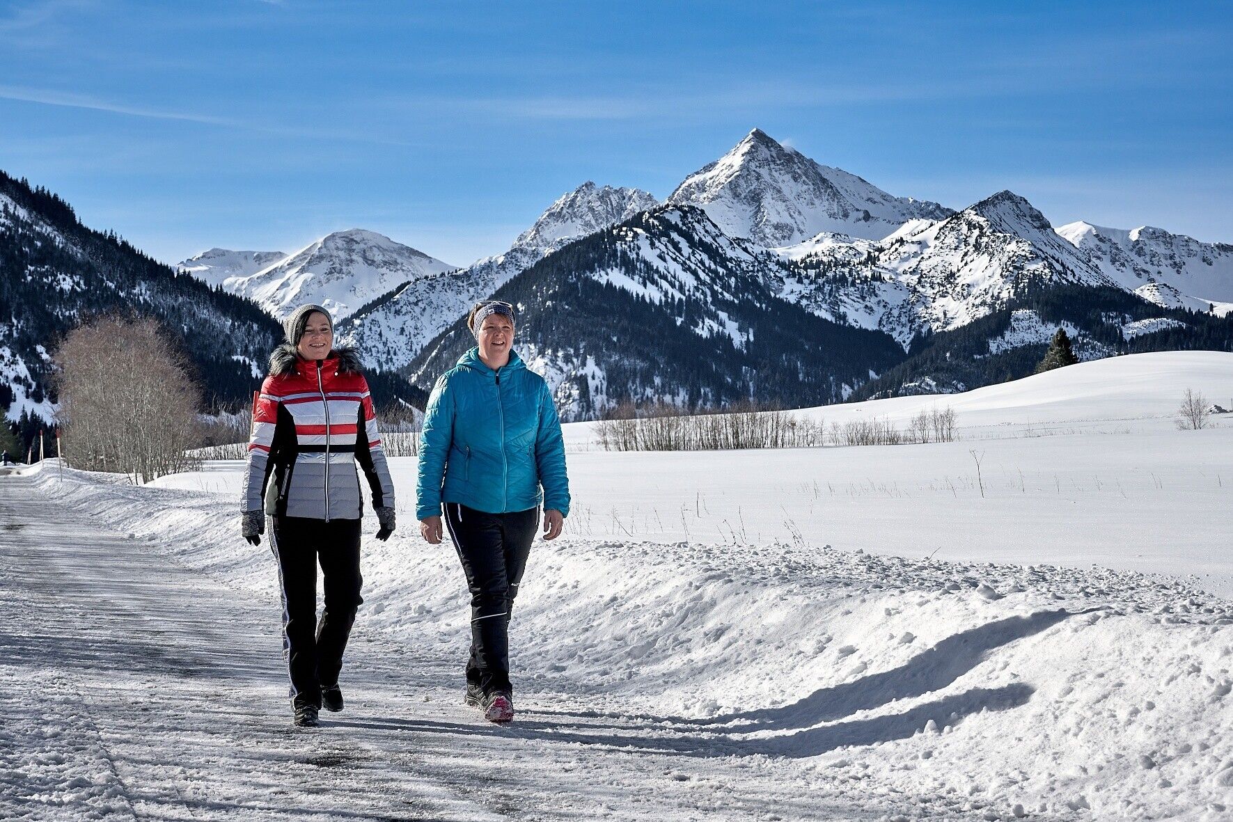 Wegbeschreibung:Die Wanderung beginnt am Parkplatz beim Gemeindeamt und führt zunächst nordwärts in Richtung St. Wendelin Kirche. Nach der Kirche verläuft die Route weiter entlang der Dorfstraße bis zur Bundesstraße. Auf dem Gehsteig entlang der verschneiten Straße geht es bis zur Firma Zitt Erdbau/Transporte. Hinter dem Firmengebäude führt der weg links in den Wiesenweg. Der Beschilderung folgend, führt die Strecke in einem sanften Bogen bis zur kleinen Brücke. Nach deren Überquerung geht es durch die stille Winterlandschaft zurück nach Grän zum Ausgangspunkt.