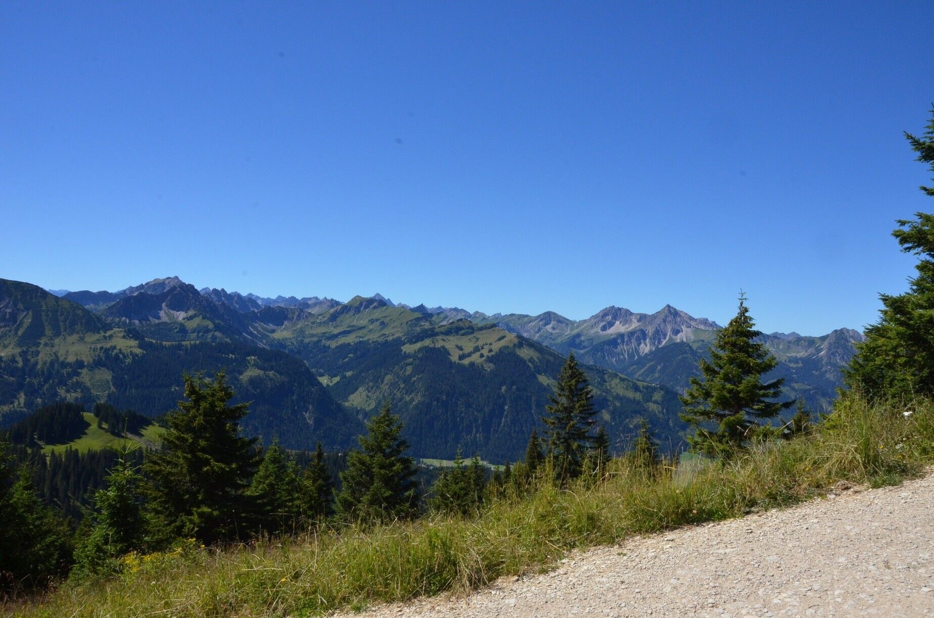 Wir fahren in Grän mit der Gondelbahn nach oben. Von dort aus folgen wir dem Weg Richtung Aggenstein bzw. Gamskopf. Der Weg führt uns hinter der Bergstation