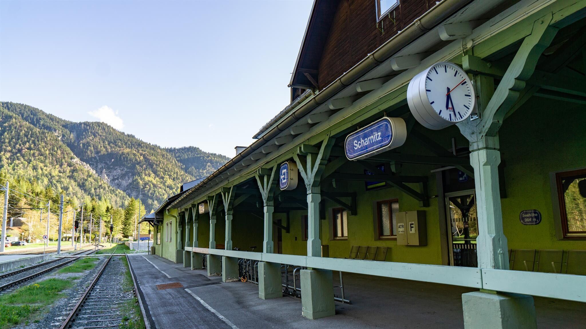 Der Bahnhof Scharnitz liegt direkt an der Hauptstraße im Ortszentrum. Unterkünfte, Wanderwege, Restaurants und das Naturpark-Infozentrum Scharnitz sind vom barrierefreien Bahnhof fußläufig in wenigen Minuten erreichbar. Der Bahnhof selbst ist unbesetzt, Fahrkarten sind daher gebührenfrei direkt im Zug erhältlich. Aktuelle Fahrplanauskünfte für Züge und Busse erhalten Sie in allen Informationsbüros der Region Seefeld.