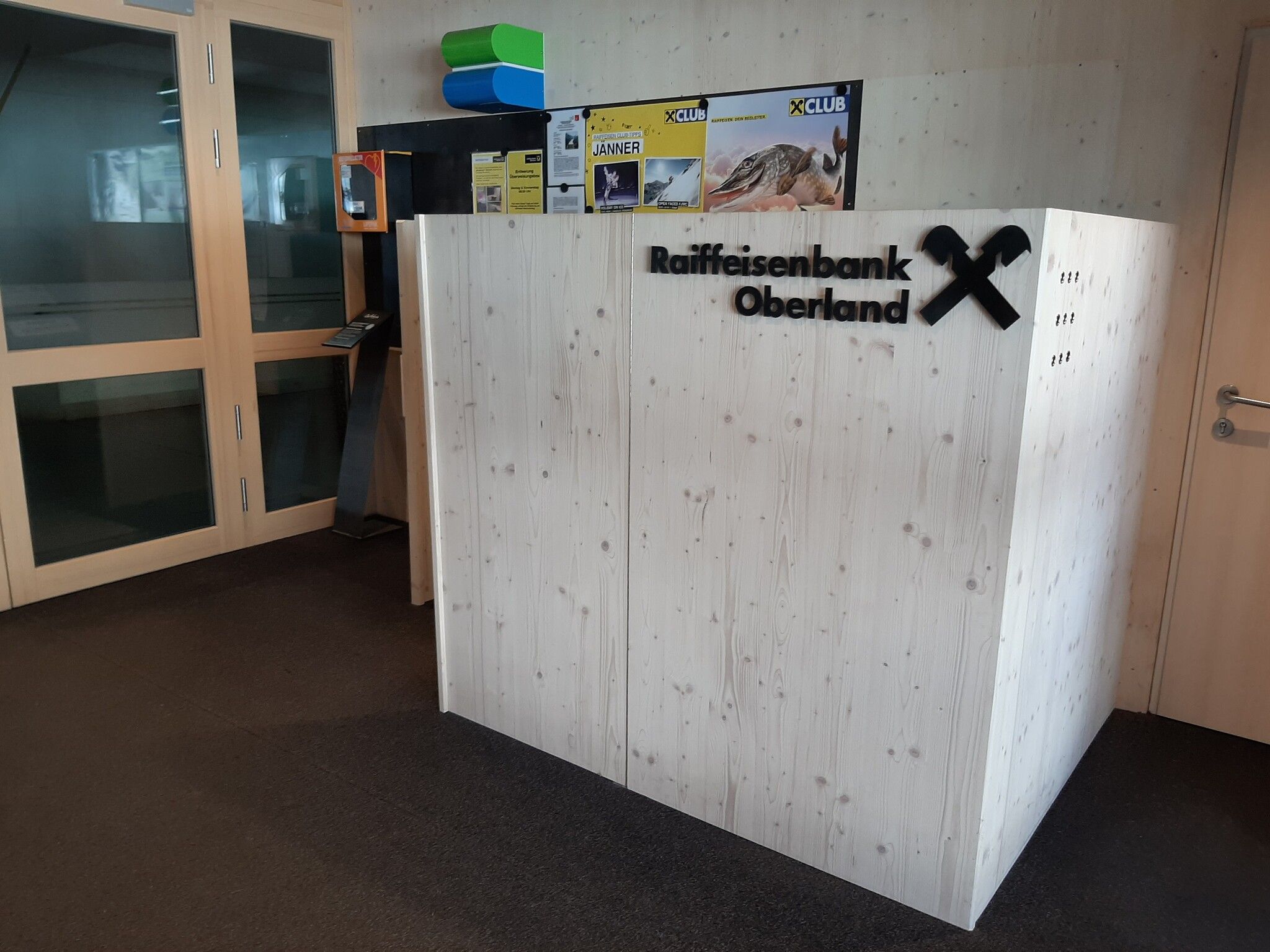 Der Bankomat/Geldautomat der Raiffeisenbank Oberland befindet sich im Foyer vom Quellalpin Kaunertal direkt in Feichten an der Kaunertaler Gletscherstraße. Täglich 24 Stunden in Betrieb. Einzahlungsautomat, Kontoauszugsdrucker