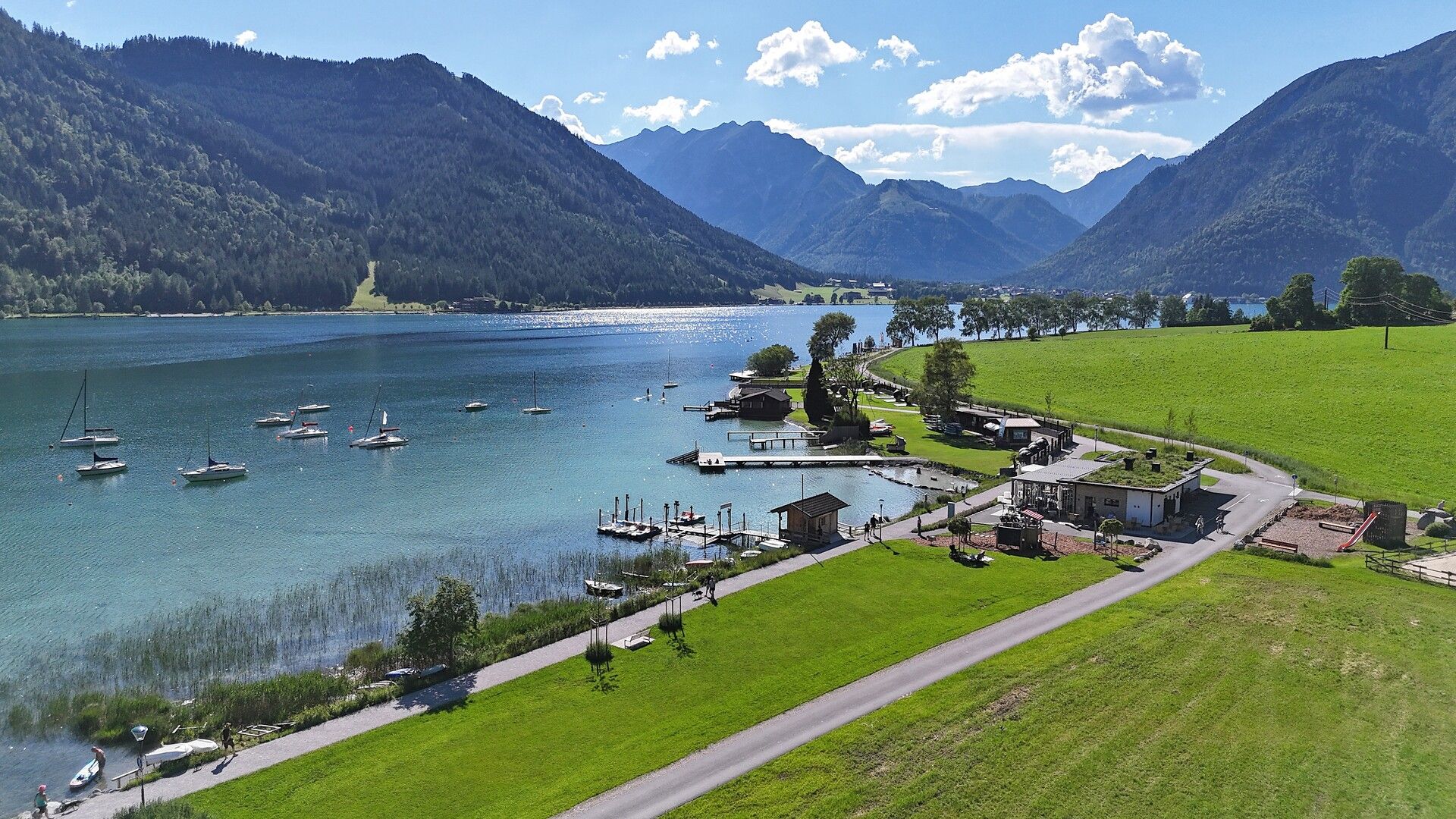 Das Wassersportzentrum in Maurach bietet Kurse im Surfen und Segeln sowie Verleih von Kajaks, Kanus und SUP-Boards – direkt am Seeufer in der Buchau. In unmittelbarer Nähe befindet sich die Beach Bar Buchau mit Bootsverleih. Betrieben werden Wassersportzentrum, Bar und Verleih vom nahegelegenen Familienresort Buchau.