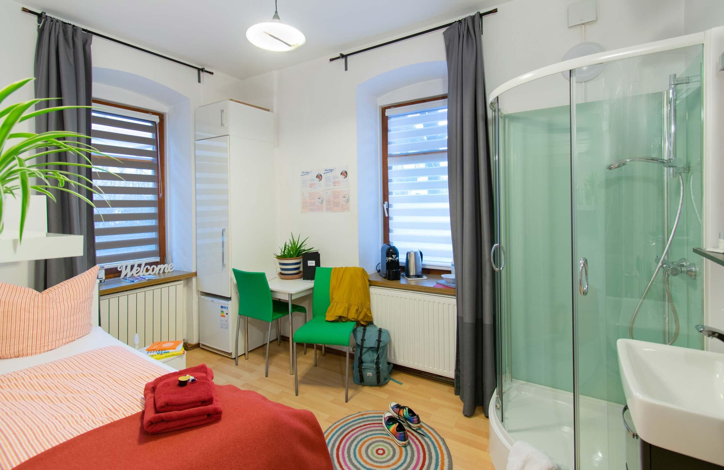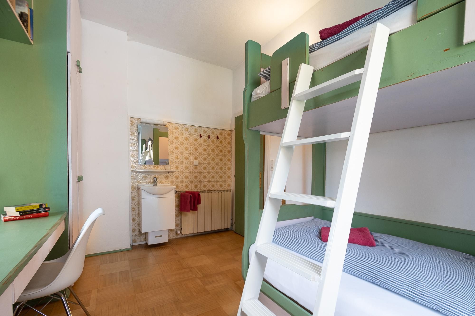 „Die Absteige 6 beherbergt derzeit zwei Appartements. Der kunterbunte „Farbtopf“ bietet Platz für bis zu 7 Personen und besitzt einen großen, überdachten Balkon.Für Alleinreisende ist das Einzelzimmer „Schnapsidee“ ein heimeliges, kostengünstiges Quartier.In nur 9 Minuten spaziert man in die Stadt und bis zum nächsten Supermarkt dauert es keine 5 Minuten. Der schöne Garten des Haupthauses „Riedz“ darf mitgenutzt werden. Parkplätze stehen ebenfalls zur Verfügung.Nicht nur Kurzurlauber, sondern auch Leute, die sich längerfristig in Innsbruck aufhalten wollen, kommen hier auf ihre Kosten.“Das nächste Restaurant erreichen Sie nach 400 m. Die Unterkunft bietet einen Garten. Appartement „Farbtopf“: 1. Stock | 80 m² & Balkonfür bis zu 7 Personenim Hauptgebäude, Riedgasse 6 Einzelzimmer „Schnapsidee“ Erdgeschoss | 12 m² & Balkonfür 1 Personim Hauptgebäude, Riedgasse 6