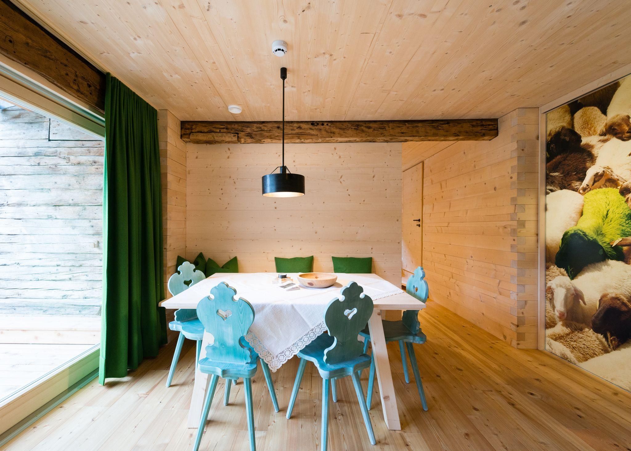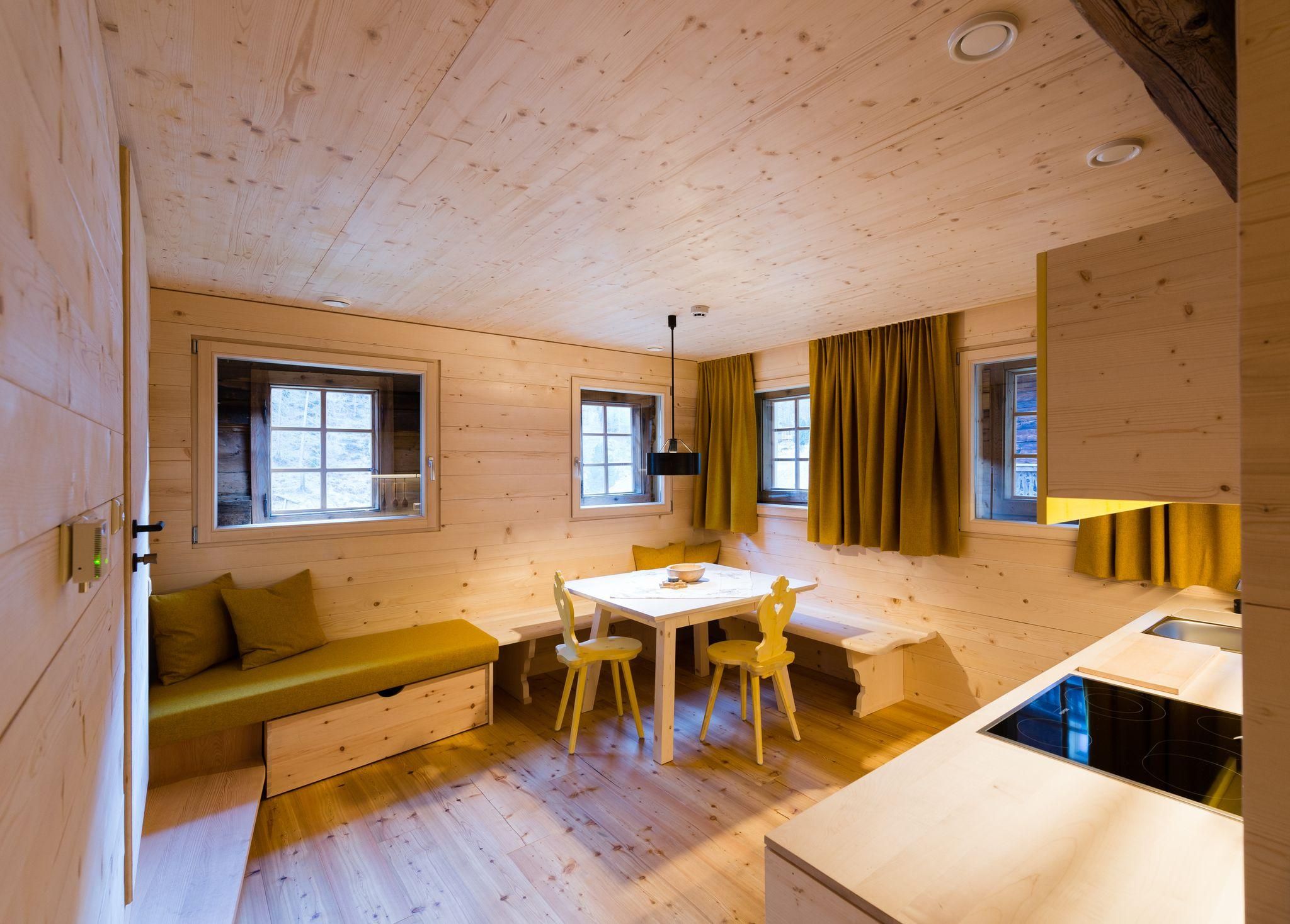 So manche Flucht findet keine gerade Linie, Türen hängen schief in den Angeln. Die Vergangenheit findet ihren Weg in das Jetzt. Weite Teile des Bauernhauses blieben im Originalzustand, um den Charakter zu wahren. Im Weiler Kalkstein gelegen auf 1640 m Seehöhe findet sich das Giatla Hof: Ein sonnenverbranntes, über 300 Jahre altes Bauernhaus, welches nachhaltig renoviert wurde. Vier zeitlich eingerichtete Ferienwohnungen - für ingesamt 12 Gäste - mit heutigem Komfort. Umgesetzt wurde die Veränderung in diesem von außen alten Haus durch die "Haus-Im-Haus-Bauweise". Im Dachboden - dem ehemaligen Stadl - befindet sich ein gemeinsam nutzbarer Saunabereich mit grandiosem Bergblick. Der Giatla Hof ... ein perfekter Ort für Skitouren, zum Wandern und Verweilen, einfach die Natur genießen.