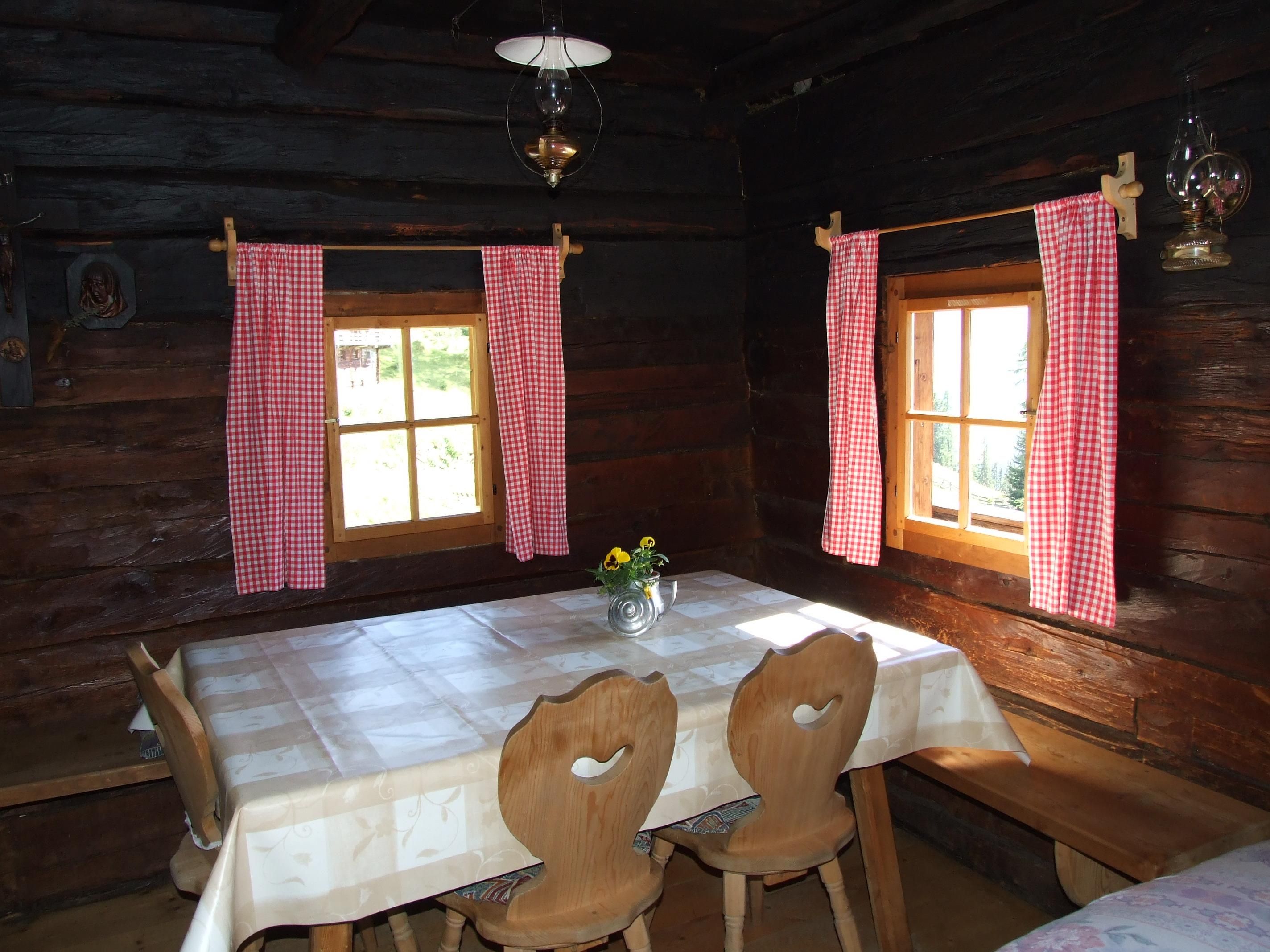 Unsere Almhütte liegt auf 1922 m Seehöhe auf der Ahornalm, einem kleinen Almdorf mit insgesamt 4 Almhütten inmitten der faszinierenden Villgrater Bergwelt. Die Hütte ist ca. 6 km vom Dorfzentrum entfernt und mit dem Auto erreichbar. Im Sommer kann man bei den Nachbarhütten frische Butter und Milch kaufen. Die Almhütte klein bietet für 4 Personen in 1 Doppelzimmer und 1 Zweibettzimmer Platz. Die Almhütte groß bietet für 6 Personen Platz in 1 Doppelzimmer, 1 3-Bettzimmer und 1 Einbettzimmer.