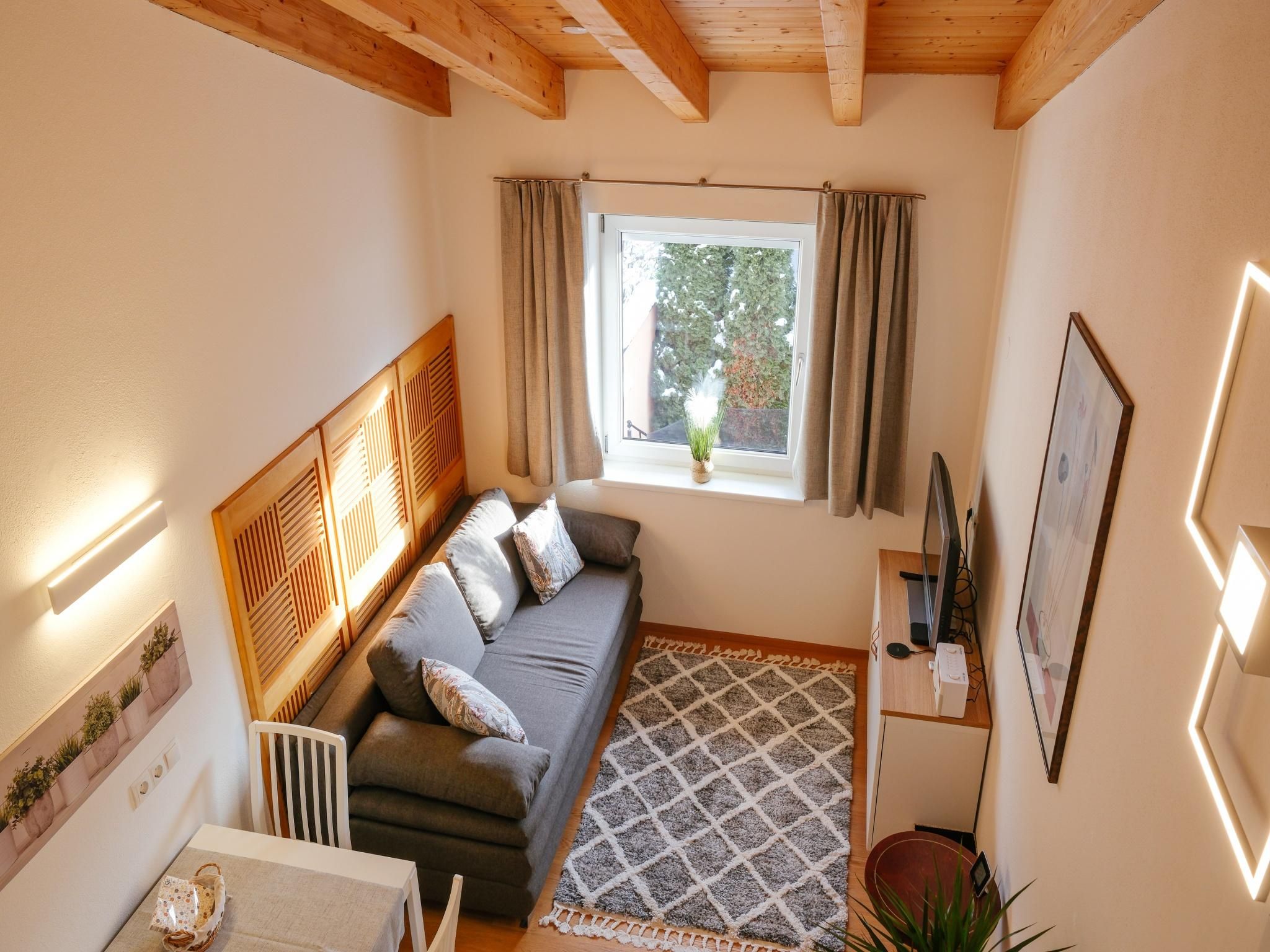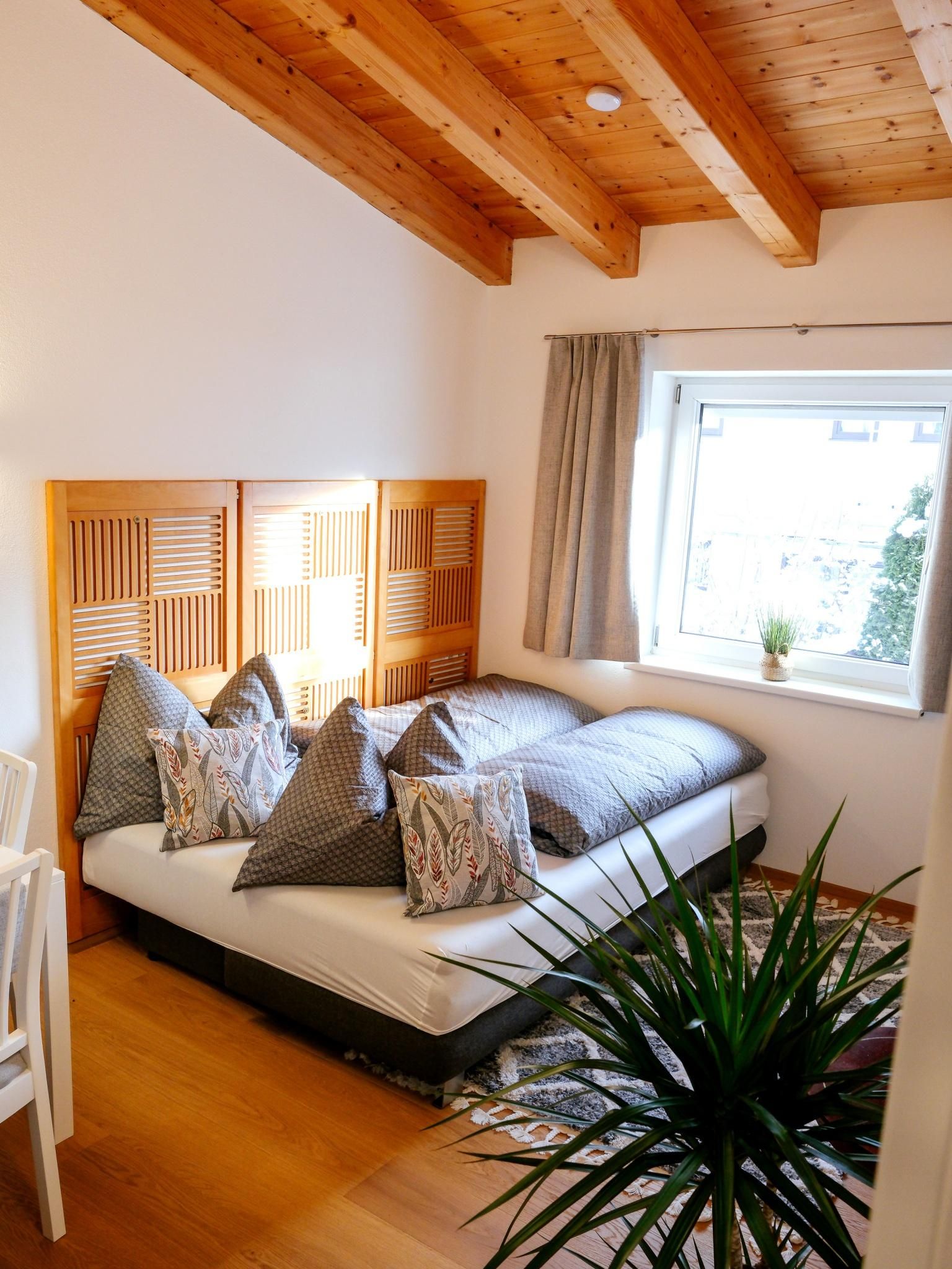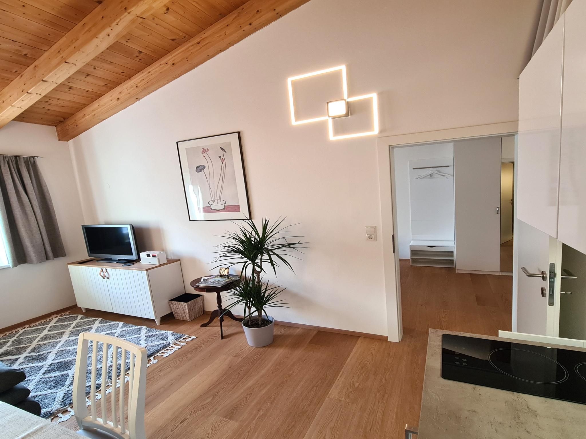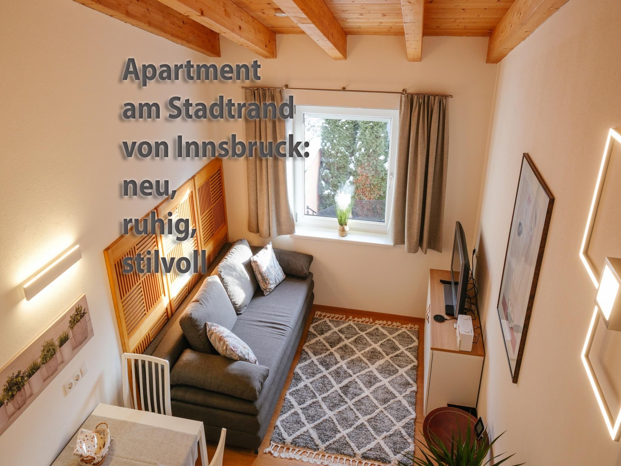 Eine stilvolle 2-Zimmer-Wohnung zum Wohlfühlen in einem ruhigen Stadteil von Innsbruck (Höttinger Au, Stadtrand, 10 min zum Zentrum). Perfekt für ein Pärchen oder eine Familie mit bis zu zwei Kindern. Das 30 m² große Appartement verfügt über ein Schlafzimmer, ein Wohnzimmer mit Küche und ausziehbarem Sofa und ein Bad mit Dusche & WC.Die Wohnung befindet sich im 1. Stock eines Zweifamilienhauses und wurde Anfang 2023 komplett renoviert (Eichen-Parkettböden, Türen, Dusche, Elektro, LED-Beleuchtung, Installationen, ...) und zur Gänze inklusive Mini-Designküche neu eingerichtet. Die Unterkunft besticht durch die große Raumhöhe (bis 4 Meter) unter den Dachbalken und gibt der Wohnung ein besonderes Flair.Auf der Nordseite des Hauses befindet sich der Gratis-Parkplatz für Gäste. Hier erfolgt der Aufgang über eine Außentreppe zum Eingang der Wohnung. Schlüsselbox für self Check In vorhanden.