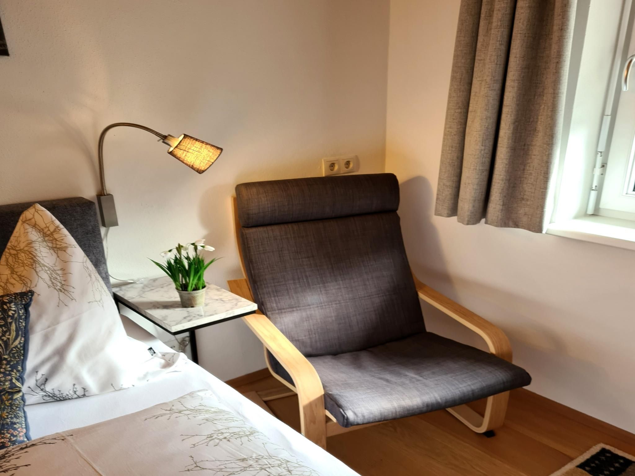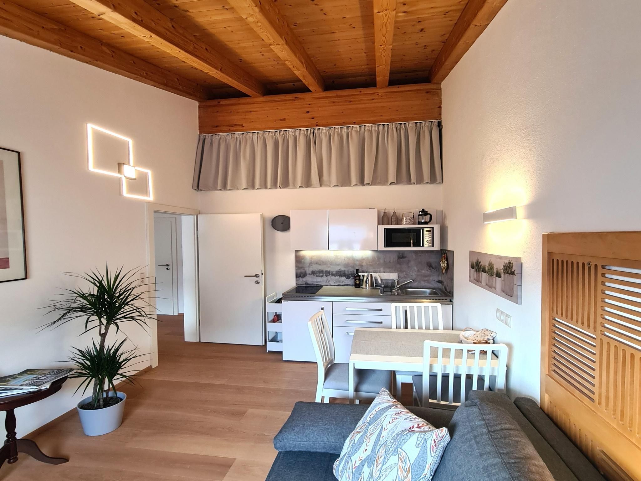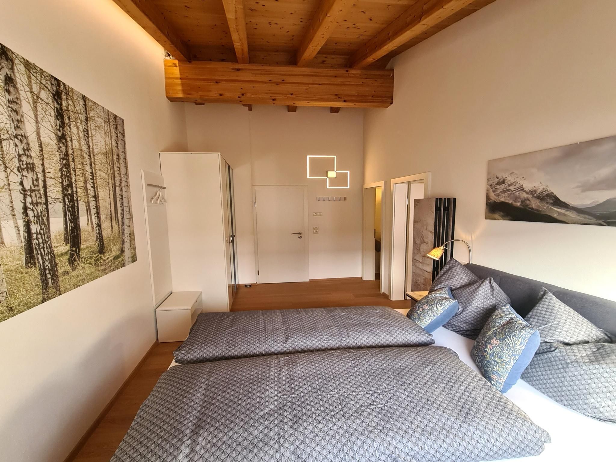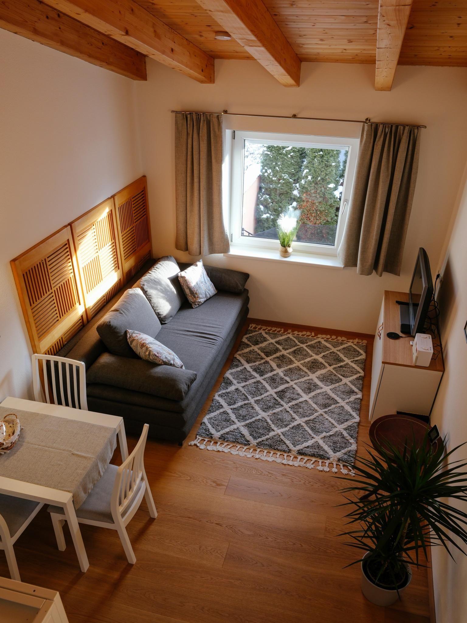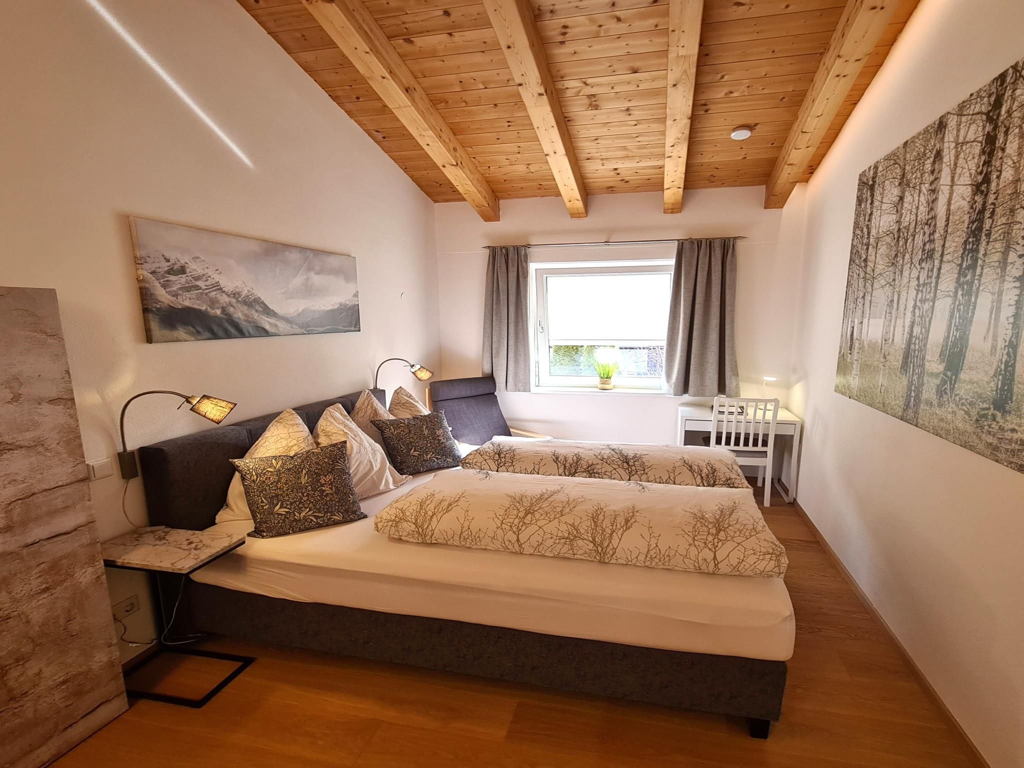 Eine stilvolle 2-Zimmer-Wohnung zum Wohlfühlen in einem ruhigen Stadteil von Innsbruck (Höttinger Au, Stadtrand, 10 min zum Zentrum). Perfekt für ein Pärchen oder eine Familie mit bis zu zwei Kindern. Das 30 m² große Appartement verfügt über ein Schlafzimmer, ein Wohnzimmer mit Küche und ausziehbarem Sofa und ein Bad mit Dusche & WC.Die Wohnung befindet sich im 1. Stock eines Zweifamilienhauses und wurde Anfang 2023 komplett renoviert (Eichen-Parkettböden, Türen, Dusche, Elektro, LED-Beleuchtung, Installationen, ...) und zur Gänze inklusive Mini-Designküche neu eingerichtet. Die Unterkunft besticht durch die große Raumhöhe (bis 4 Meter) unter den Dachbalken und gibt der Wohnung ein besonderes Flair.Auf der Nordseite des Hauses befindet sich der Gratis-Parkplatz für Gäste. Hier erfolgt der Aufgang über eine Außentreppe zum Eingang der Wohnung. Schlüsselbox für self Check In vorhanden.
