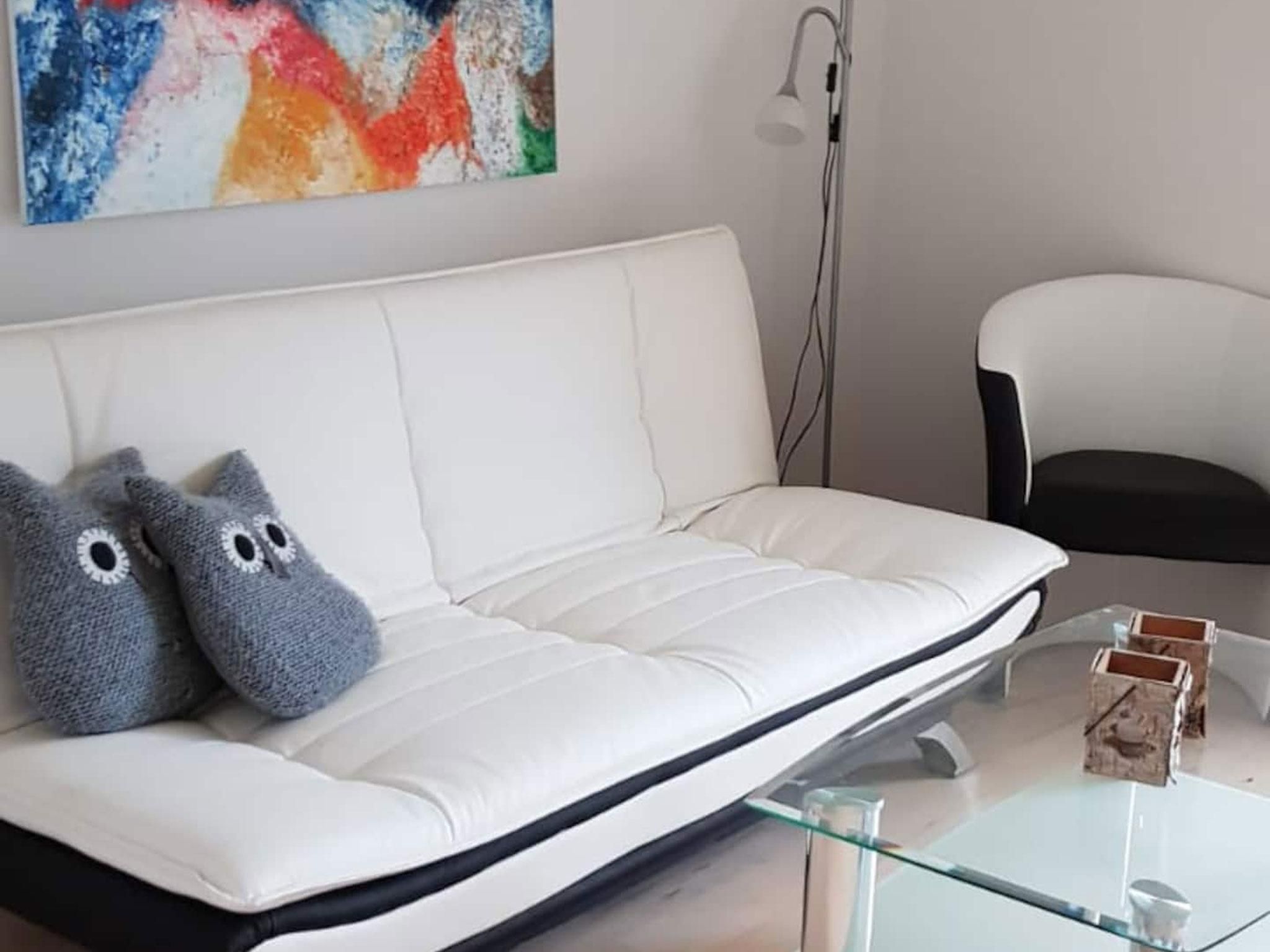 Das Haus ist ein freistehender Bungalow mit zwei Schlafzimmern und einem großem Wohnzimmer mit offener Küche, Badezimmer (mit WC) und zusätzlichem separatem WC von insgesamt 110qm Wohnflächen. Parkplätze sind direkt am Haus bzw. im Winter auch überdachte Parkplätze, 30m entfernt.
