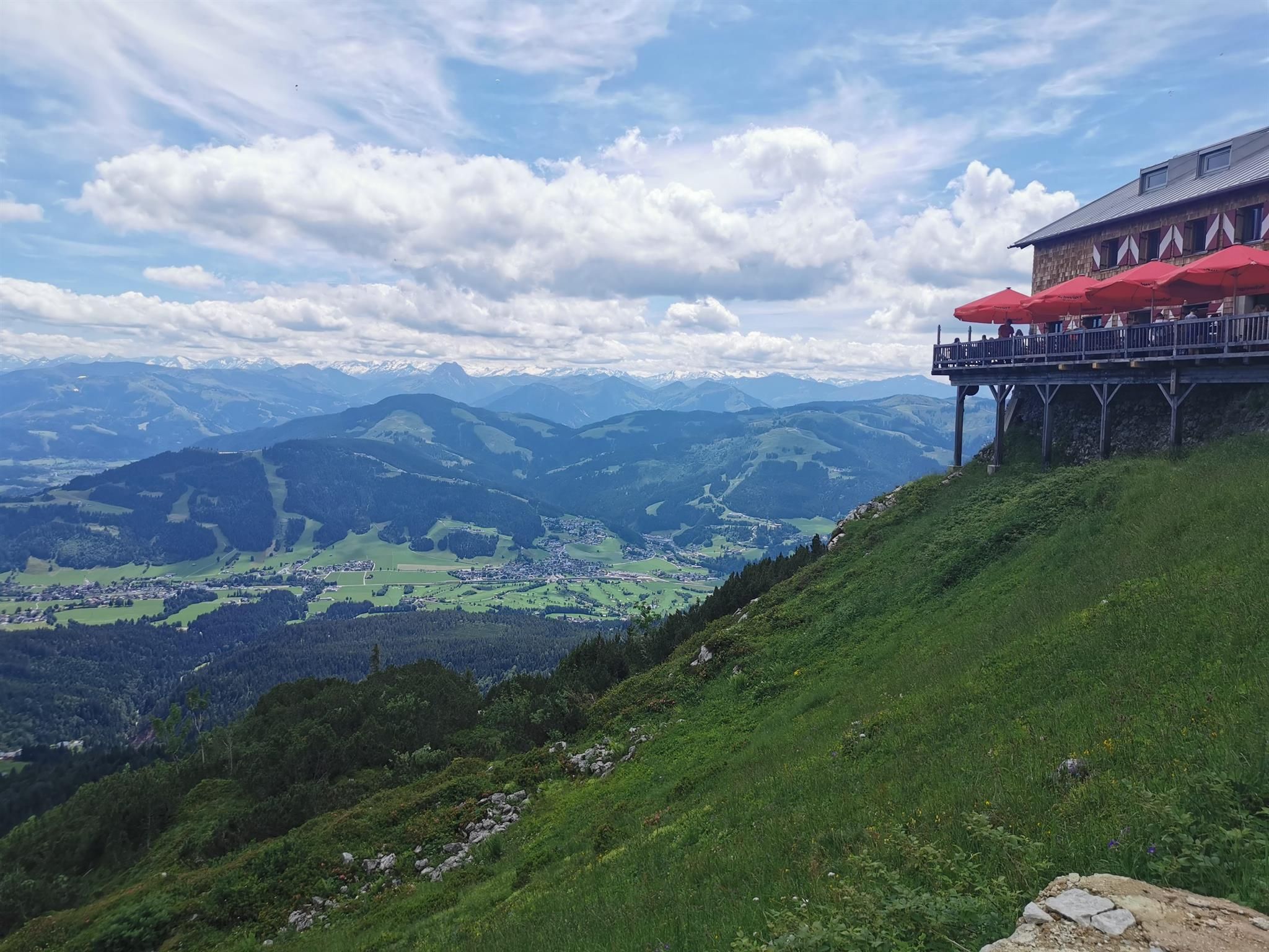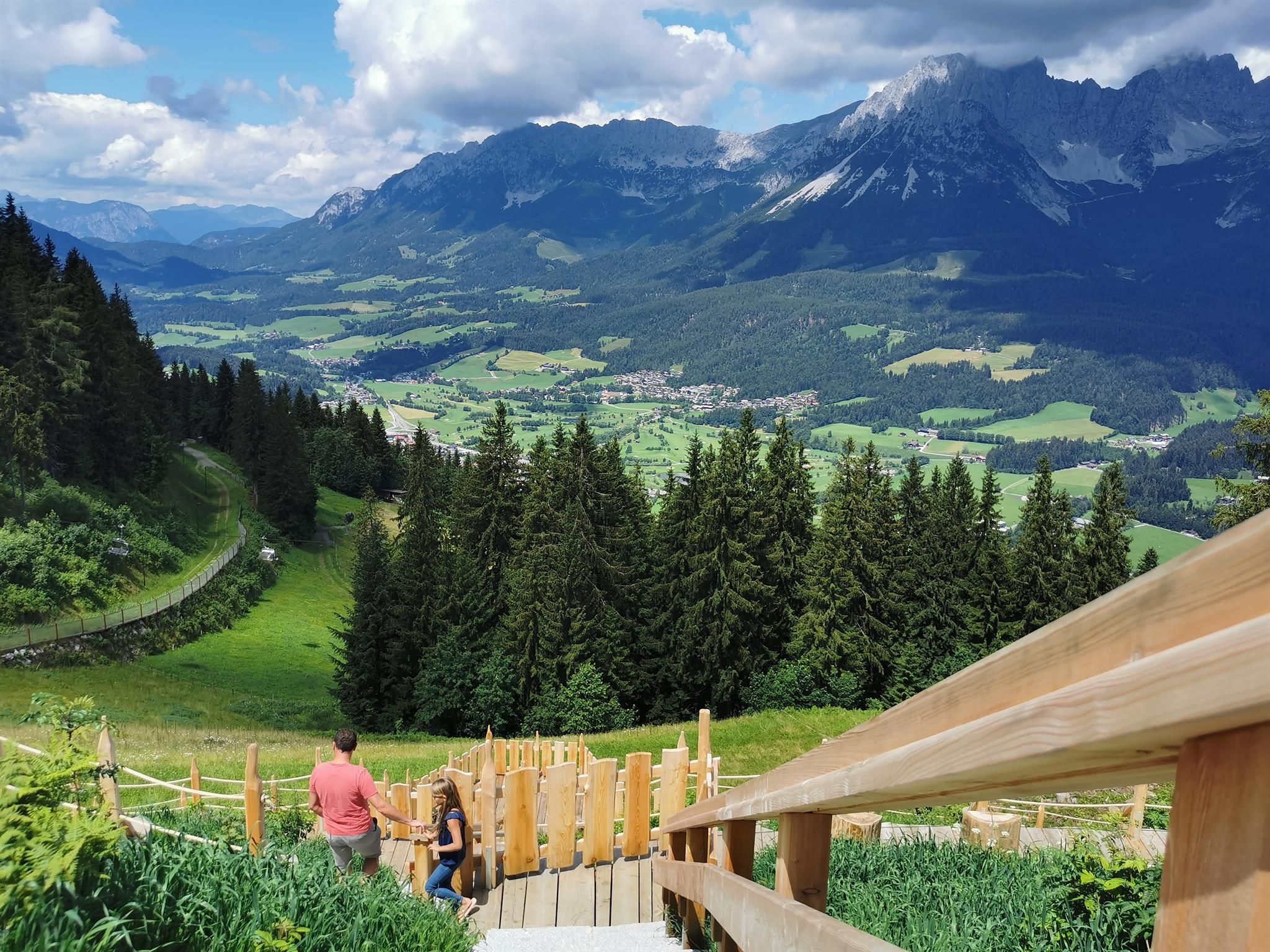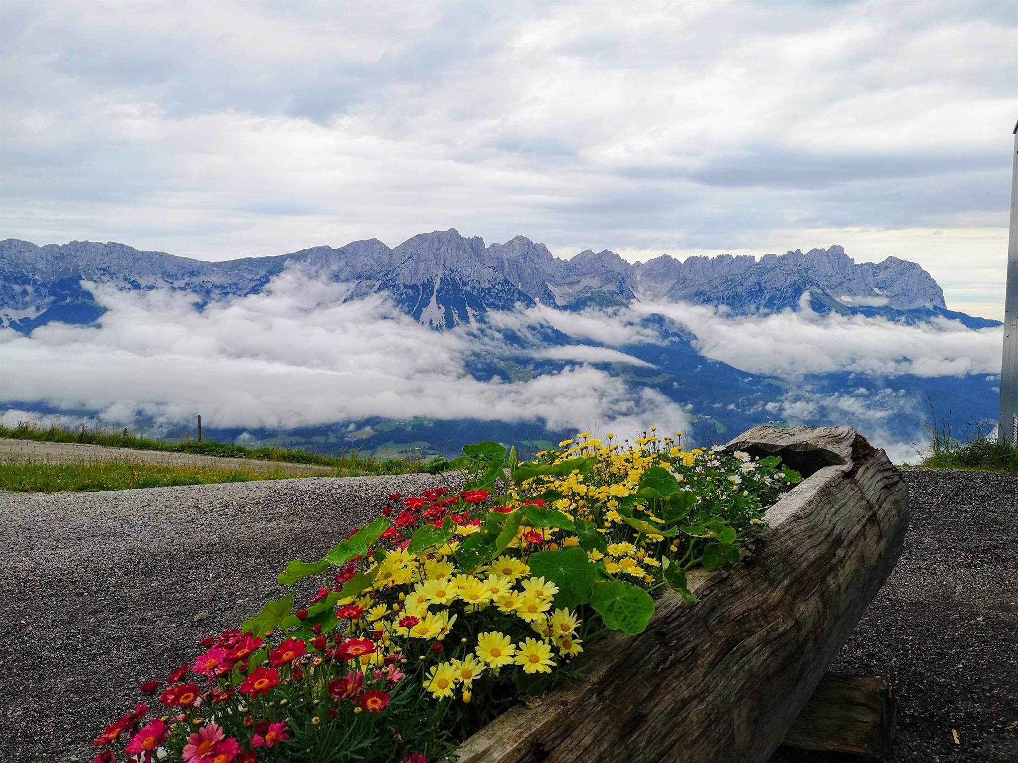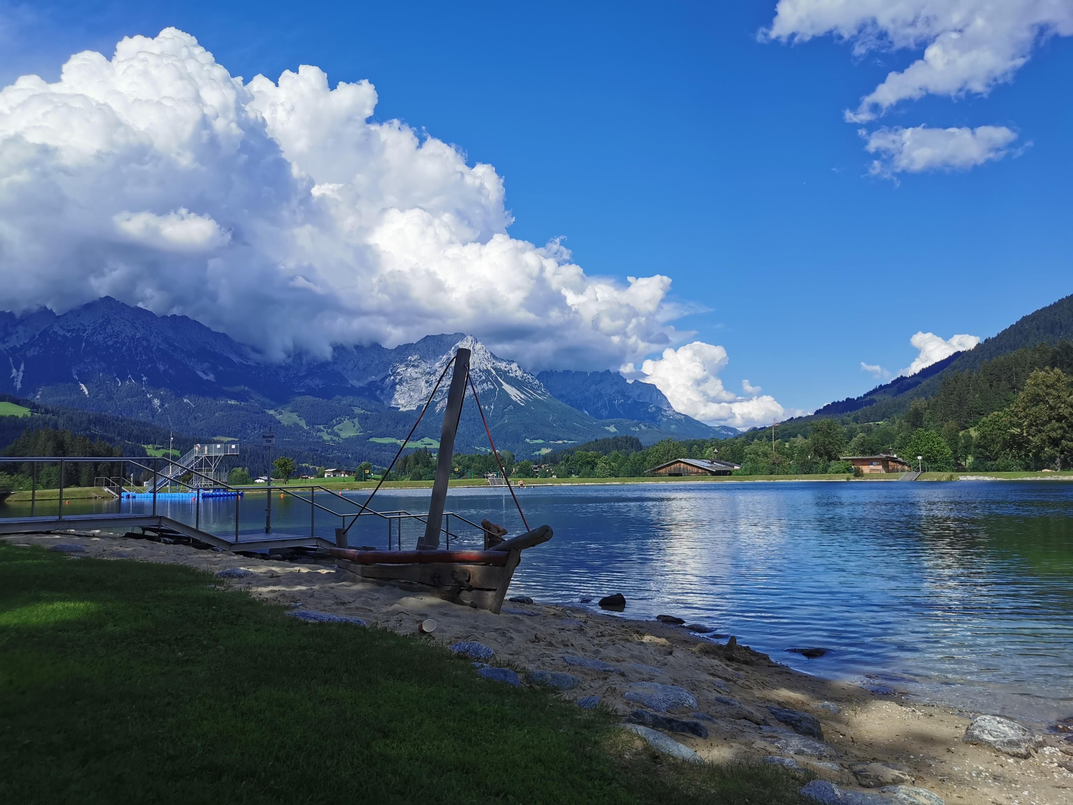 Unser Angebot für Sie: Unser Appartement Edelweiß wurde im Mai 2017 liebevoll renoviert und bietet Platz für bis zu 6 Personen. Jedes Jahr kommen kleinere oder größere Neuerungen dazu. 2019 wurde unsere tolle Ostterrasse mit Kaiserpanorama fertig gestellt.Im Herbst 2023 wurde das Bad komplett renoviert.In der großen, komplett ausgestatteten Wohn-Küche finden Sie: Geschirrspüler, Herd mit Ceranfeld und Backofen, Toaster, Nespresso-Kaffeemaschine, "normale" Kaffeemaschine, Wasserkocher, Gewürze, Zucker usw., sowie eine schöne Essecke. Im Wohnbereich gibt es eine gemütliche Couch, einen Fernseher mit Satelliten-TV und ein Radio. Auf den beiden Terrassen (Süd & Ost) können Sie mit einem traumhaften Blick auf den Wilden Kaiser die Seele baumeln lassen. Im Sommer steht Ihnen ein Weber Elektro-Grill zur Verfügung.Die Wohnung hat zwei getrennte Schlafzimmer jeweils mit Kaiserblick. In einem steht ein großes Doppelbett (180x200) und ein Einzelbett, welches zu einem Doppelbett (160x200) ausgezogen werden kann. Das zweite Schlafzimmer hat ein Stockbett mit einer großen Liegefläche unten (140x200) und einem normalen Bett oben und bietet Kindern genügend Platz zum Spielen. Beide Schlafzimmer bieten ausreichend Stauraum für Ihre Kleidung. Auf Wunsch stellen wir Ihnen gern kostenfrei Kinderbett/ Hochstuhl zur Verfügung. Das geräumige Badezimmer mit Wellness-Dusche und Doppelwaschtisch und viel Stauraum ist getrennt vom WC nutzbar und mit einem Föhn ausgestattet. WLAN, Handtücher (1 Set/ Person), Bettwäsche, Geschirrtücher, Seife, Spültaps, Spülmittel sind im Preis inklusive. Für Ihr Auto steht Ihnen ein Carport mit 2 Stellplätzen zur Verfügung Im Wellnessbereich gibt es eine finnische Sauna, eine Infrarotkabine und eine große Dusche. Ein kleiner Ruhebereich mit Liegen rundet das Wellnessvergnügen ab. Sollten Sie extra Bademäntel und Saunatücher hierfür benötigen, erhalten Sie die gegen einen kleinen Aufpreis im Set. Buchen Sie Ihren Traumurlaub! Wir freuen uns auf Sie!