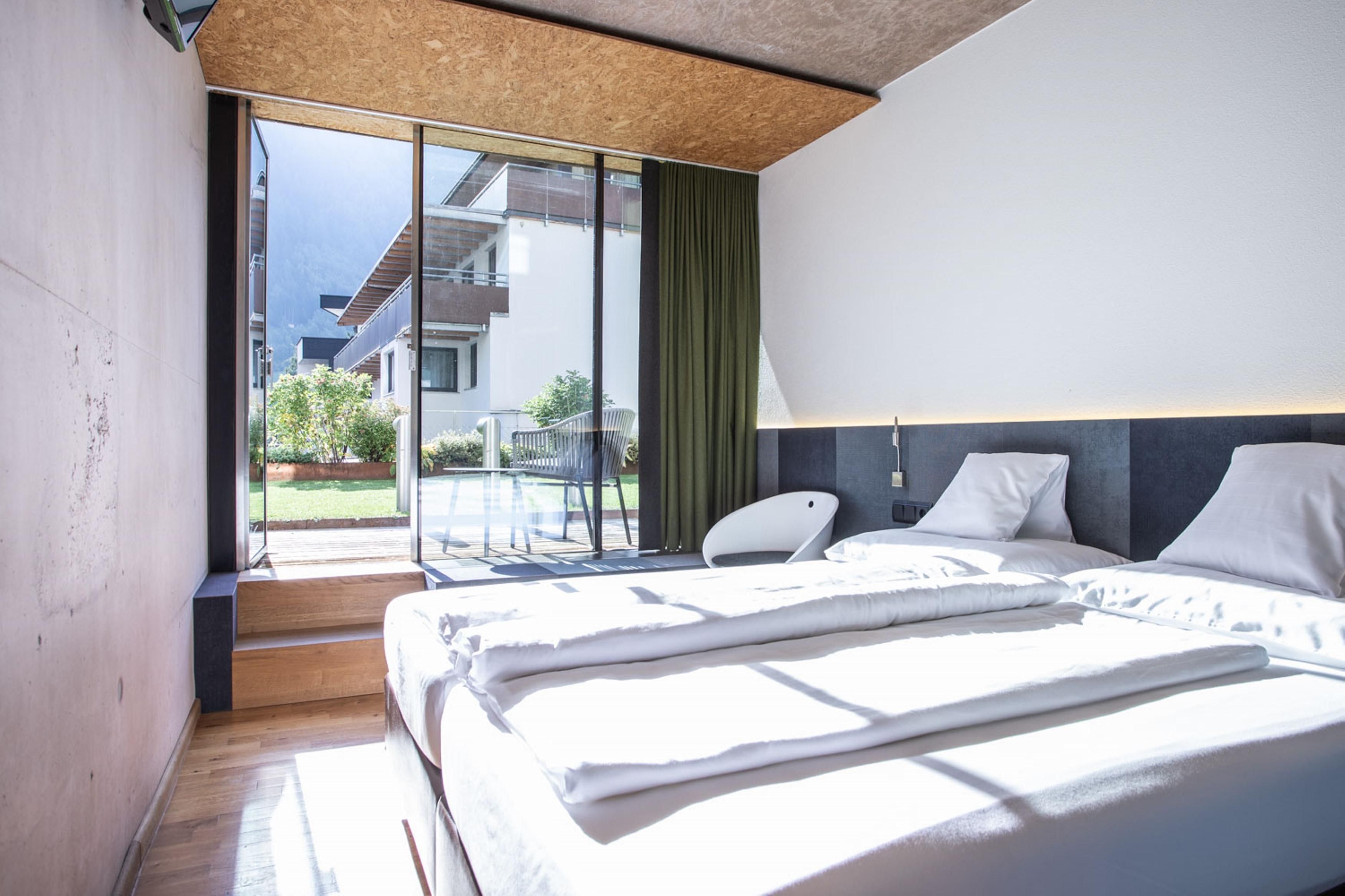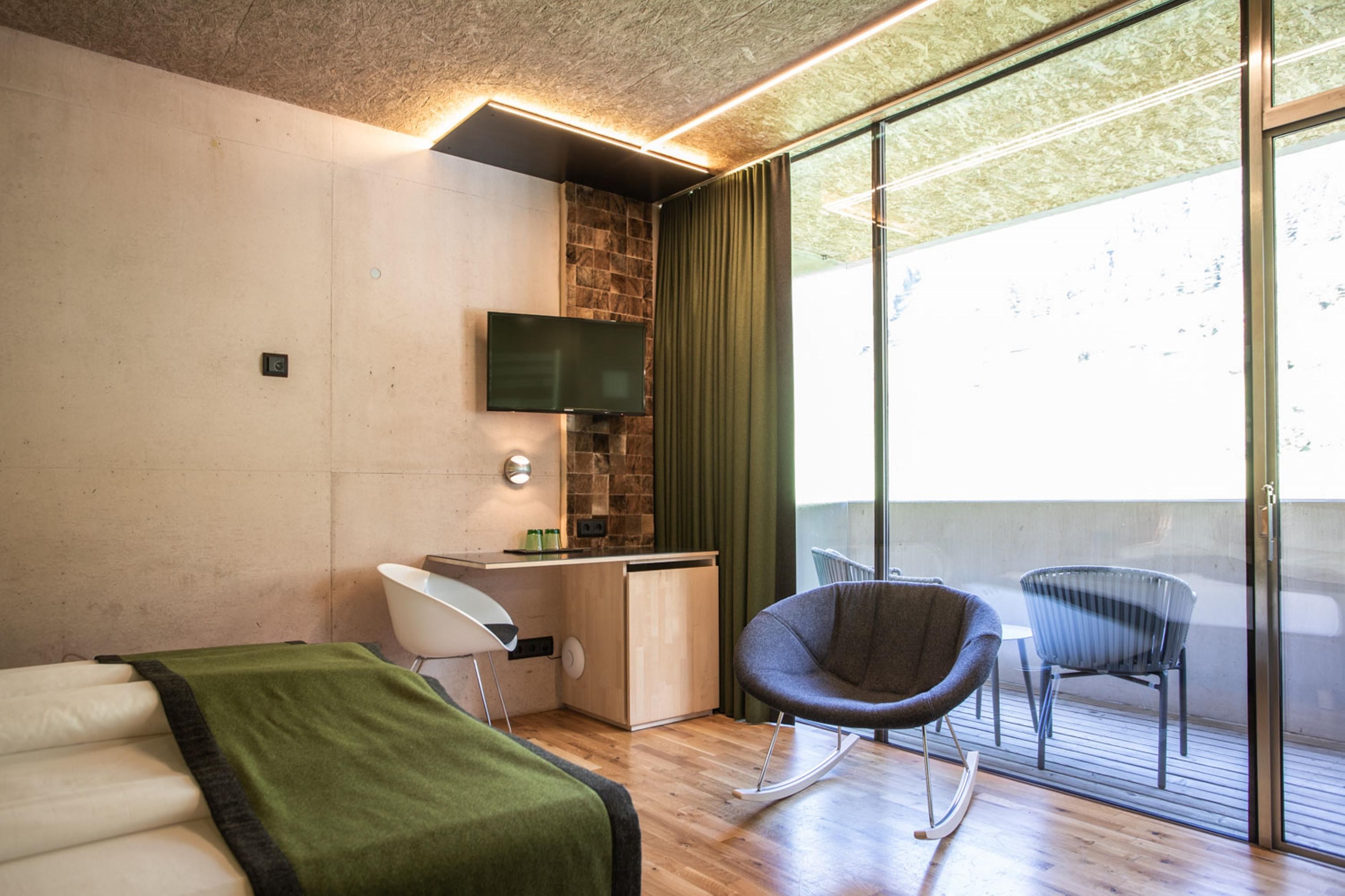In unserem modernen Vier-Sterne Superior Hotel in St. Anton wohnen Sie in bevorzugter Lage direkt neben den Nasserein-Bergbahnen. Im Winter können Sie sich auf Ski-in/Ski-out freuen.Statt typisch alpinem Ambiente bieten wir Ihnen puristisches Design, das dank der innovativen Kombination aus Beton, Holz und Glas perfekt mit der Umgebung am Arlberg harmoniert. Unaufgeregte Naturmaterialien und die klare Linienführung vermitteln das wohltuende Gefühl von Ruhe und Gelassenheit. Wenn Sie einen Partyurlaub planen, ist das Arlmont leider nicht der richtige Ort für Sie.