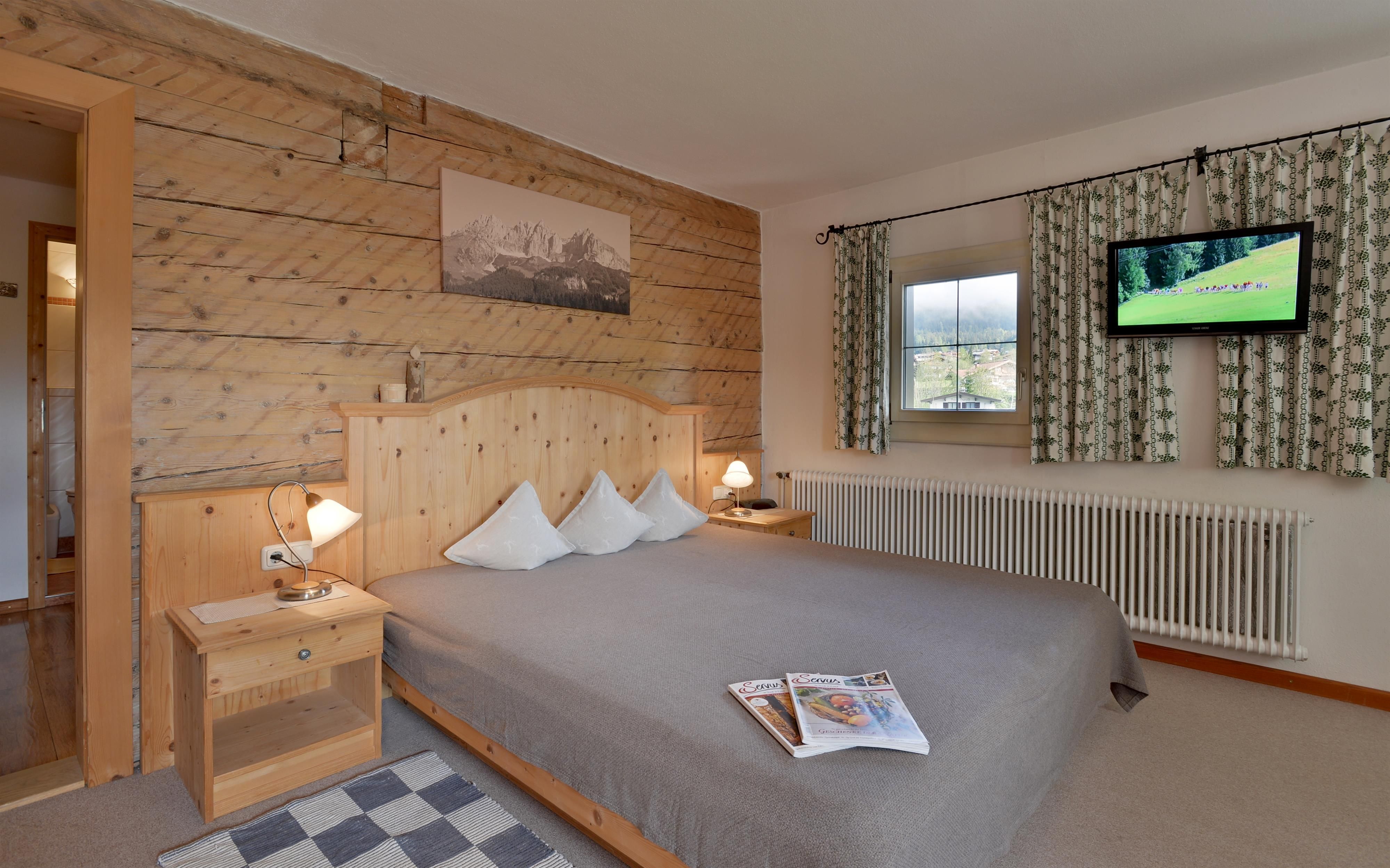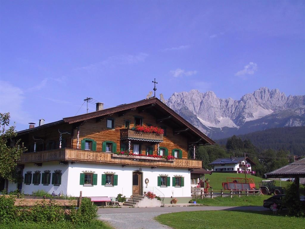 Eine herrliche Lage - das bietet unser Hof in Going am Wilden Kaiser auf der Sonnenseite des Wilden Kaisers. Tirolurlaub auf unserem fast 200 Jahre alten Bauernhof. Seit jeher wurden Werte, Brauchtum und Tradition von Generation zu Generation weitergegeben und verwurzeln tief mit der Heimat. Ob in unseren unverwechselbaren mit viel Holz und Liebe zum Detail eingerichteten Ferienwohnungen im Bauernhof oder im Ferienhaus nebenan. Oder genießen Sie bei uns einen Almurlaub auf unserer Regalm. Im Sommer können Sie sich auf unserer großen Liegewiese neben unserem Haus entspannen und die Ruhe genießen mit direktem Blick auf den Wilden Kaiser. Ob wandern, Rad fahren, klettern, bei uns sind Sie genau richtig. Bei unserer Bauernhofführung können Sie alles miterleben - schauen Sie beim Melken zu, streicheln Sie die Kälber und Katzen oder füttern die Hasen. Auch für eine frische Abkühlung sorgt der Goinger Naturbadesee der nur 10 Gehminuten entfernt ist. Im Winter können Sie direkt hinter unserem Haus in die Langlaufloipe einsteigen. In Going finden Sie auch den Einstieg am Astberg in das größte zusammenhängende Skigebiet den Sie ganz bequem mit dem kostenlosen Skibus erreichen können. Oder düsen Sie einfach mit dem Schlitten die 4,5 km lange Rodelbahn am Astberg herunter. Auch unsere Sauna und Infrarotkabine laden zur puren Entspannung ein.Wir freuen uns , Sie zu verwöhnen zu dürfen Fam. Foidl