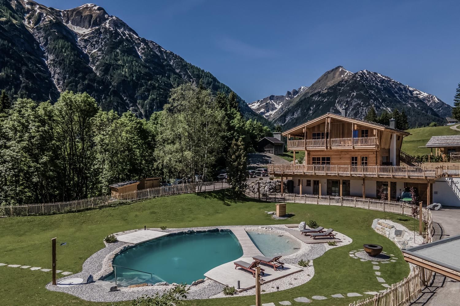 Blühende Bergwiesen, eine traumhafte Aussicht auf die umliegenden Berge und die Ruhe unterhalb der Jöchelspitze. In diesem unbeschreiblichen Ambiente begrüsst Euch das Berg Chaletdorf Benglerwald. Oberhalb des wunderschönen Lechtals auf einem Hochplateau gelegen, ist das Berg Chaletdorf Benglerwald die perfekte Kulisse für Euren Highlight-Urlaub in den Tiroler Alpen. Lasst Euren Blick über die Weiten der Berge schweifen und genießt die luxuriöse Privatsphäre inmitten der ungestörten Natur. ca. 15.000 m² Wald- und Grundstücksfläche Panorama-Alleinlage 1.200m Seehöhe Genussmanufaktur Skilift 200m Entfernung Private SPA in jedem Chalet 200qm großer Bergsee mit Yoga-Plattform Kulinarische Schmankerl ins Chalet geliefert Jedes Chalet ist einzigartig und mit viel Liebe zum Detail eingerichtet. Allgemein ist der zeitlose alpine Baustil, kombiniert mit modernem Holzbau und einem einzigartigen Interieur-Design, der für ein besonderes Flair und viel Hüttenzauber sorgt.
