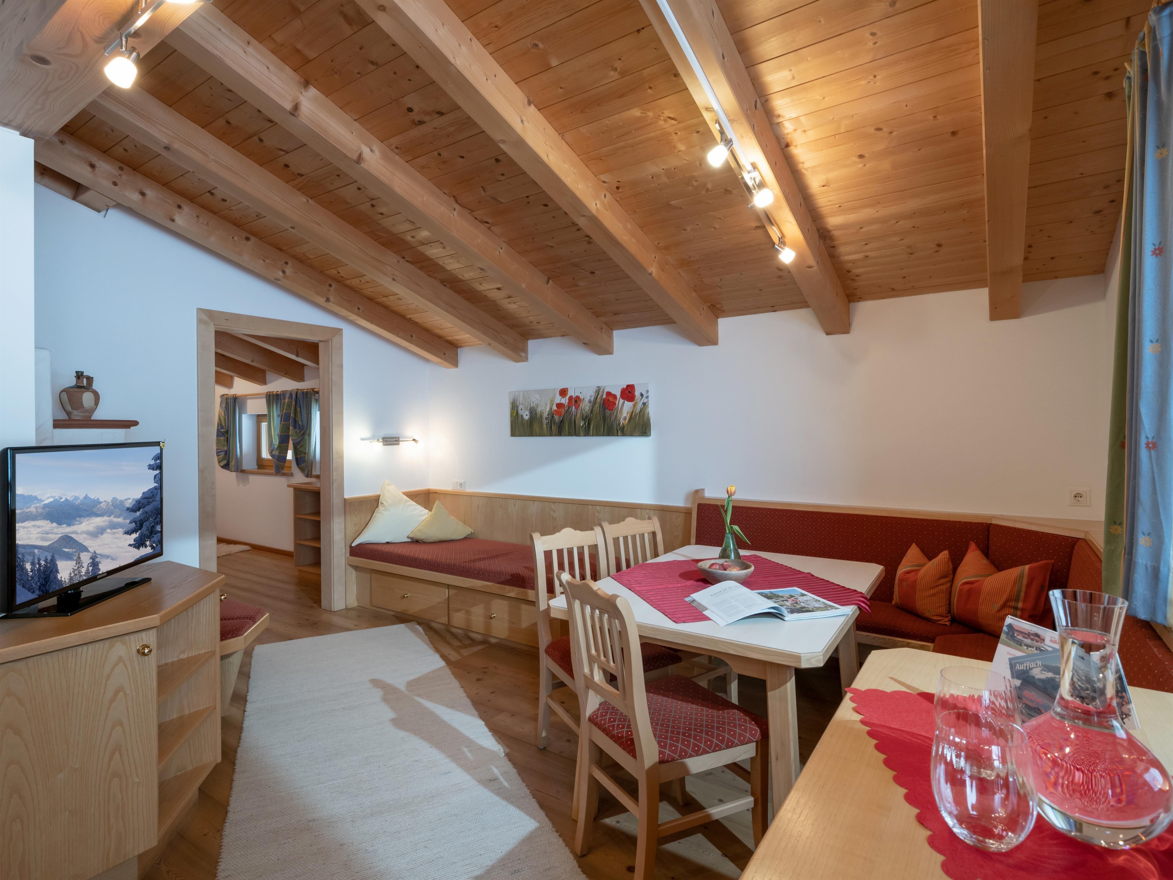 Herzlich Willkommen im Berghaus Koglmoos!Ankommen, und sich wie zu Hause fühlen.Ein Paradies auf 1.300 Meter Seehöhe inmitten des schönsten Alm-und Skigebietes, etwa 5 km oberhalb des Dorfes Auffach.Unser Reizklima wird Menschen mit sensiblen Bronchien empfohlen - bei uns können Sie Gesundheit zu vernünftigen Preisen tanken.Von der Haustür raus, schon können Sie sämtliche Berge und Almen bewandern.Die Ferienwohnungen sind äußerst gemütlich, mit jeglichem Komfort ausgestattet. W-LAN, Flachbild Sat-TV und Kachelofen gehören selbstverständlich dazu. Waschmaschine+Trockner stehen zur Verfügung.Im Sommer : vor der Haustür gibt´s den super Spielplatz mit Wasserlauf, Trampolin und noch viele andere Attraktionen.Auch ein Spielzimmer wartet auf unsere kleinen Gäste. Im Winter: Raus aus dem Skikeller und ab auf die Piste . Am morgen die ersten Spuren ....im Schnee, nachmittags in die Sauna.Sommer: Dienstag + Mittwoch Ruhetag (keine Verpflegung)! Winter: kein Abendessen am Montag . Wir freuen uns auf Ihren Besuch.