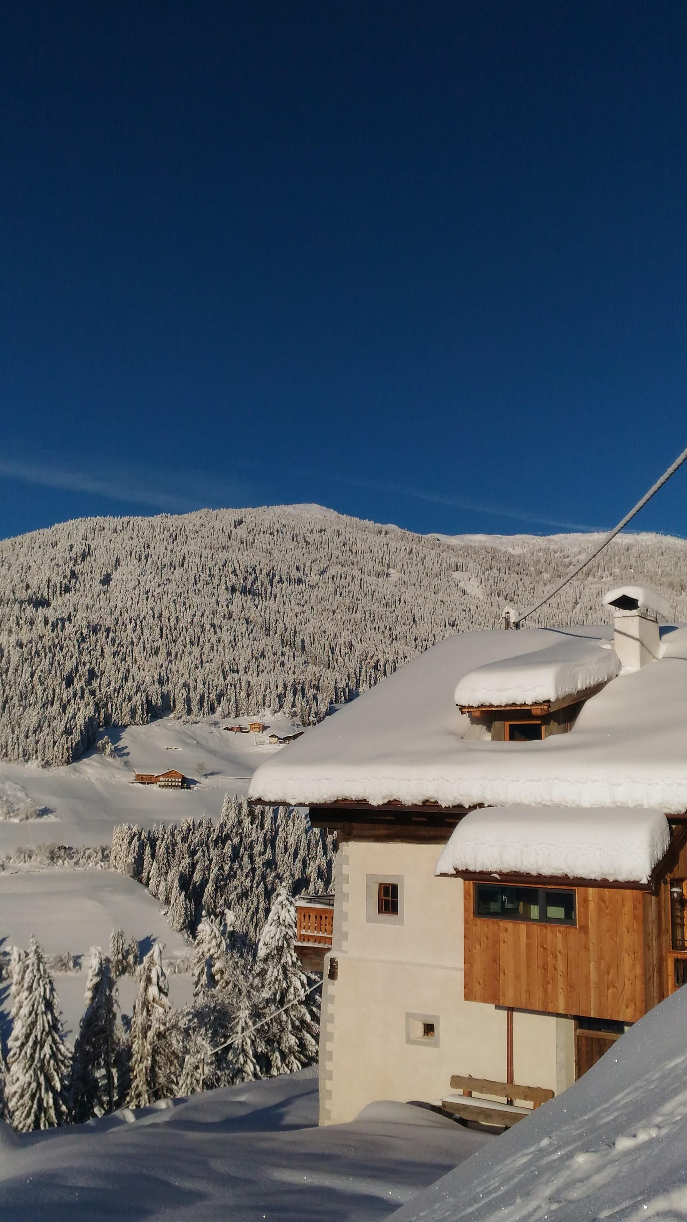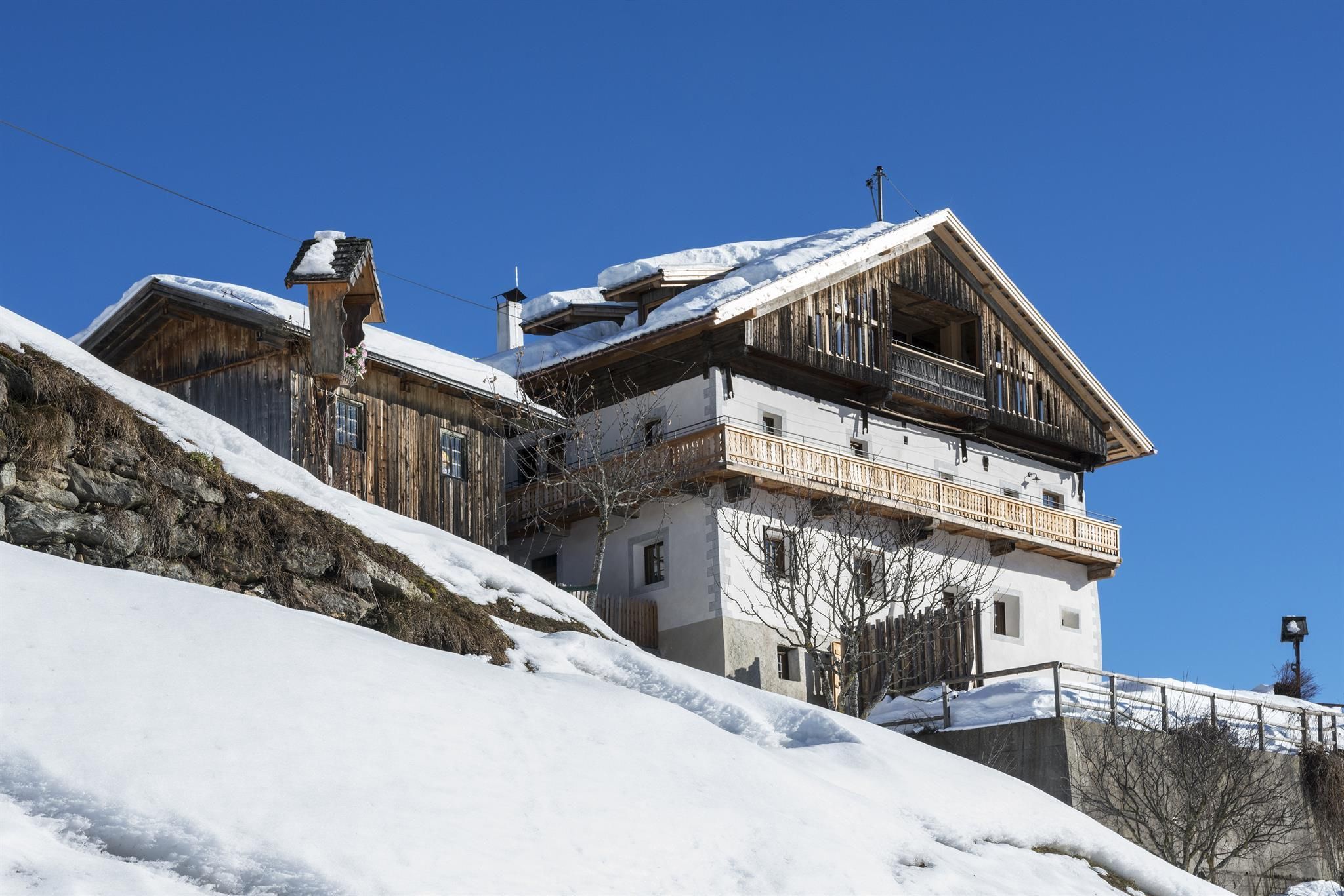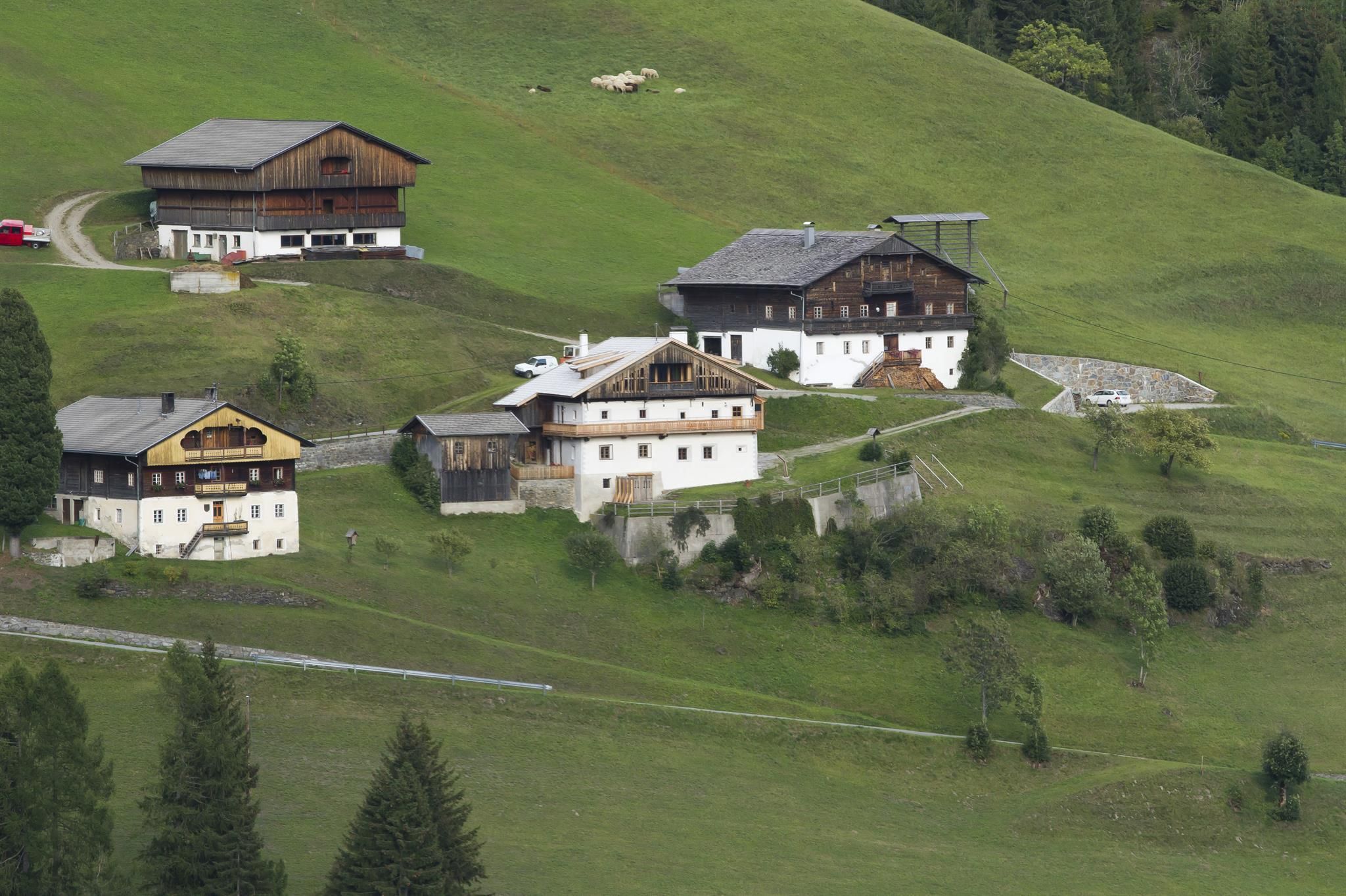 Unser Hof am Heinfelsberg erzählt Geschichten. Denkmalgeschützt, im Jahr 1299 erstmals urkundlich erwähnt. Kürzlich saniert, und noch so wie immer, unverfälscht und schlicht. Kommt um ihn nach Belieben zu beleben! Auf 1.300m Seehöhe, am sonnigen Berghang des Hochpustertals, grandioser Ausblick auf das Dolomiten UNESCO Weltnaturerbe, den Helm und die Königin des Pustertals, Burg Heinfels. Nicht weit weg vom quirligen Innichen in Südtirol, 3Zinnen Skigebiet und den Thurntaler Skiliften, mitten im Wander- und Radfahrerparadies. Einzigartig im Pustertal: Wohnen im Denkmal. Über 250m² Fläche für Sie zum Entschleunigen auf drei Stockwerken: 10 Betten im oberen Stockwerk: fünf Zimmer mit altem originalen Getäfel, drei davon mit en-suite Bädern. Balkone rund um’s Haus, Veranda/Home-Office mit Rundumblick. Im Erdgeschoss die einzige noch erhaltene, mittelalterliche "Rachkuchl", große Stube, Badewanne im Gewölbe, Tages-WC. Sauna ebenerdig mit Außenterrasse, Loungecouch, großer Garten.