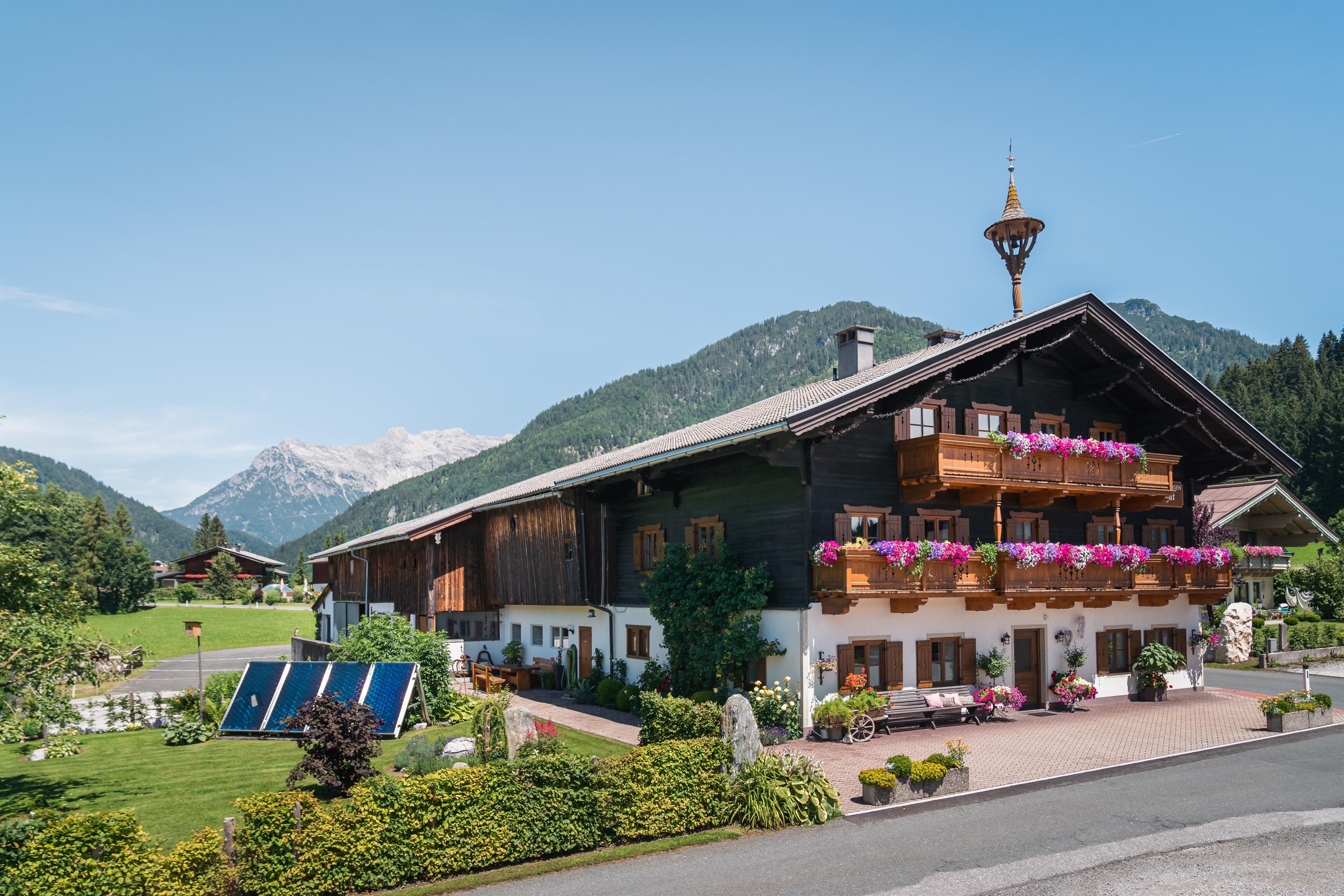 Ein Hof, ganz für sich alleine! Das Glaagut wurde erstmals 1377 urkundlich erwähnt, die Geschichte des Hauses reicht aber mit großer Wahrscheinlichkeit bis zum Ende des 12. Jahrhunderts zurück. Die Grundmauern meterdick - aus purem Stein und jahrhundertealtes Holz, nach dem Mond geschlagen, sind der Mantel, welcher dem Haus seinen unvergleichlichen Charme gibt. Innen warten helles Holz, viel Licht und große Räume auf die Gäste. In den letzten Jahren wurde das Haus behutsam renoviert, ohne ihm seinen Charakter zu nehmen. In den Obergeschossen befinden sich die Schlafstuben, im Erdgeschoss die Stube, die "Kuchi". Alles Neue wurde dezent und handwerklich gekonnt eingebaut - unaufdringlich und doch sichtbar. Wo es möglich war, wurde die alte Substanz erhalten und liebevoll renoviert, hochwertige Möbel verschmelzen mit hübschen Details und ergeben ein harmonisches Miteinander.